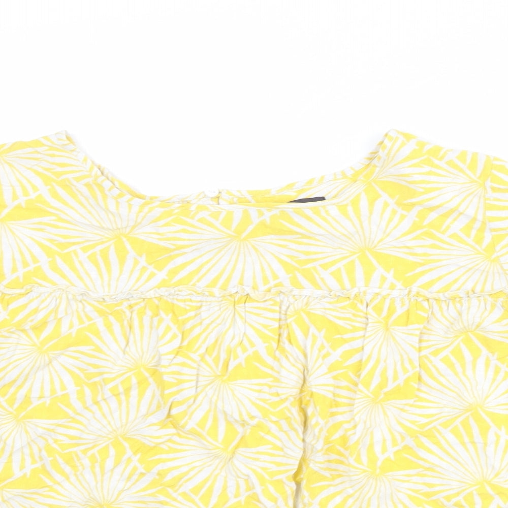 Womens Yellow Geometric Viscose Basic Blouse Size 14 Boat Neck
