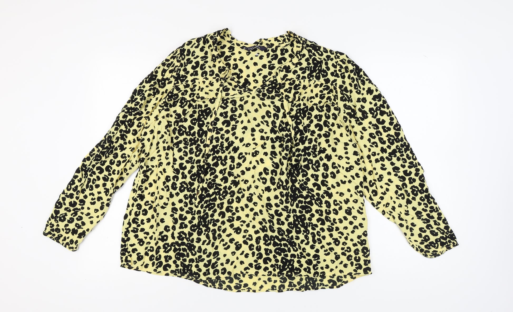 Elevate your style with this vibrant yellow leopard print top from Marks and Spencer, crafted for the fashion-forward woman. Designed with a classic animal print pattern, this piece brings a touch of the wild to your wardrobe. Ideal for making a bold statement, the long sleeves provide ample coverage for those cooler days, while the 100% viscose material ensures a soft, comfortable fit that drapes elegantly. As part of the regular size type, this top fits a UK size 18, offering a perfect blend of style and comfort. Whether dressing up for a casual outing or adding an exotic flair to a business ensemble, this top is versatile enough to suit various occasions. Machine washable for easy care, it's an effortlessly chic addition to any wardrobe. Ideal for animal print enthusiasts, this top promises to be a staple in your collection, perfectly marrying quality with an eye-catching design. Experience the allure of luxurious fashion with this Marks and Spencer creation. Perfect for day-to-night transitions, pair it with your favourite jeans or a sleek skirt for an instant outfit upgrade.
