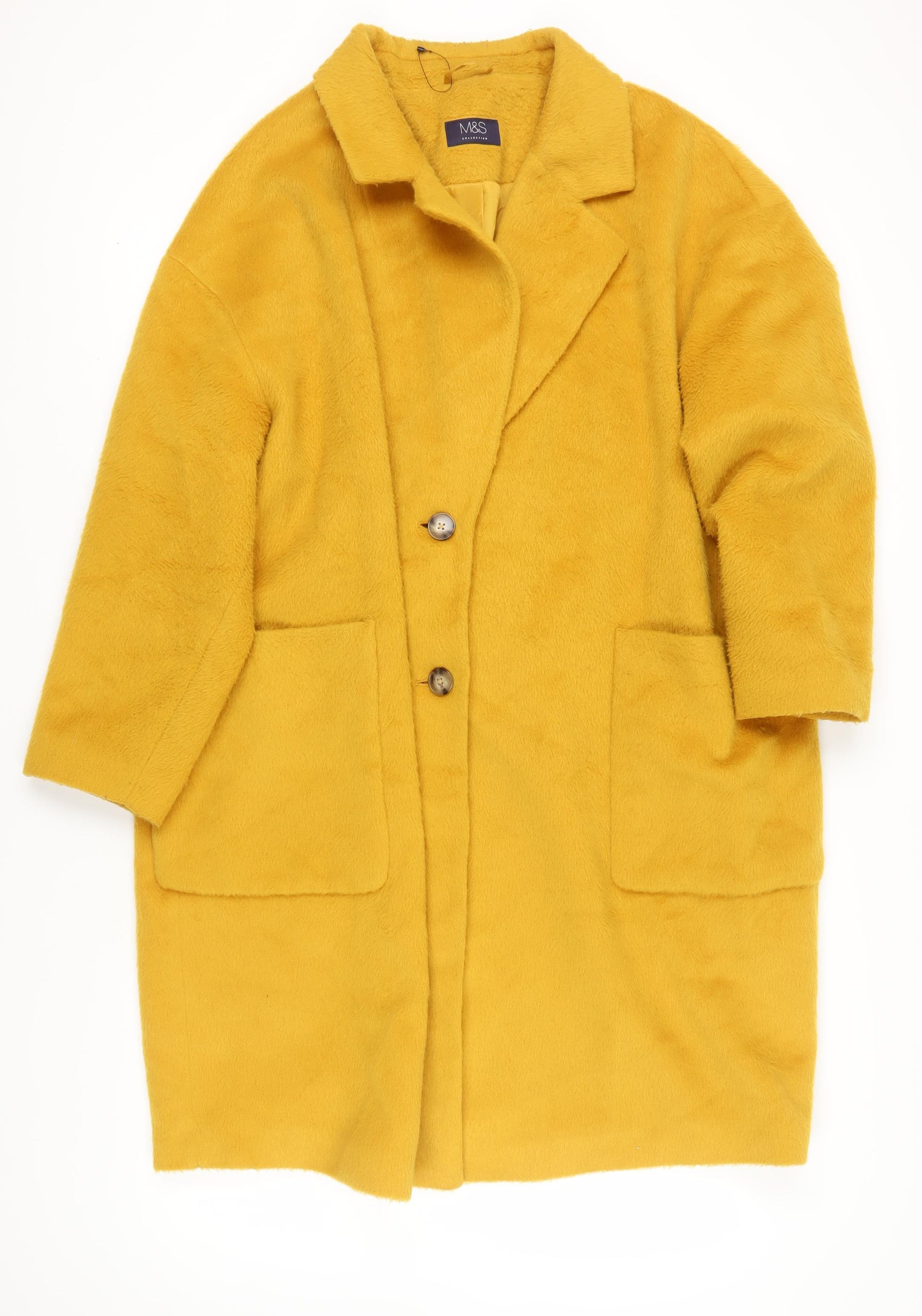 Brighten up your outerwear collection with this sunny Marks and Spencer Women's Overcoat in a vibrant yellow hue. Crafted from a blend of 87% polyester and 13% wool, this coat offers both warmth and durability. The long, relaxed fit is perfect for layering over your favourite autumn and winter outfits. Featuring a classic collared design and single-breasted button closure, it combines style with functionality. The coat is lined with comfortable polyester material, providing an additional layer of warmth. With handy pockets for your essentials, this coat is ideal for casual outings and everyday wear. Embrace the colder months with confidence and style in this chic overcoat that promises to add a splash of colour to any wardrobe.