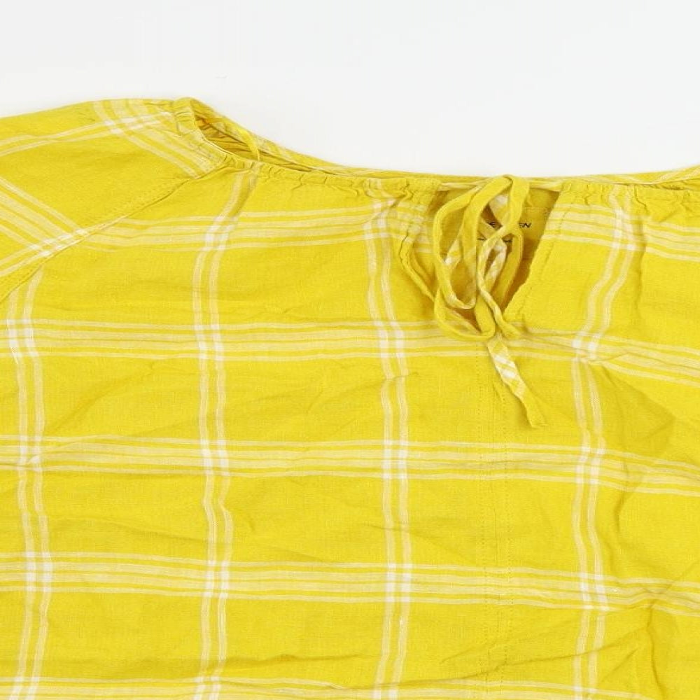 Womens Yellow Plaid Linen Basic Blouse Size 12 Boat Neck