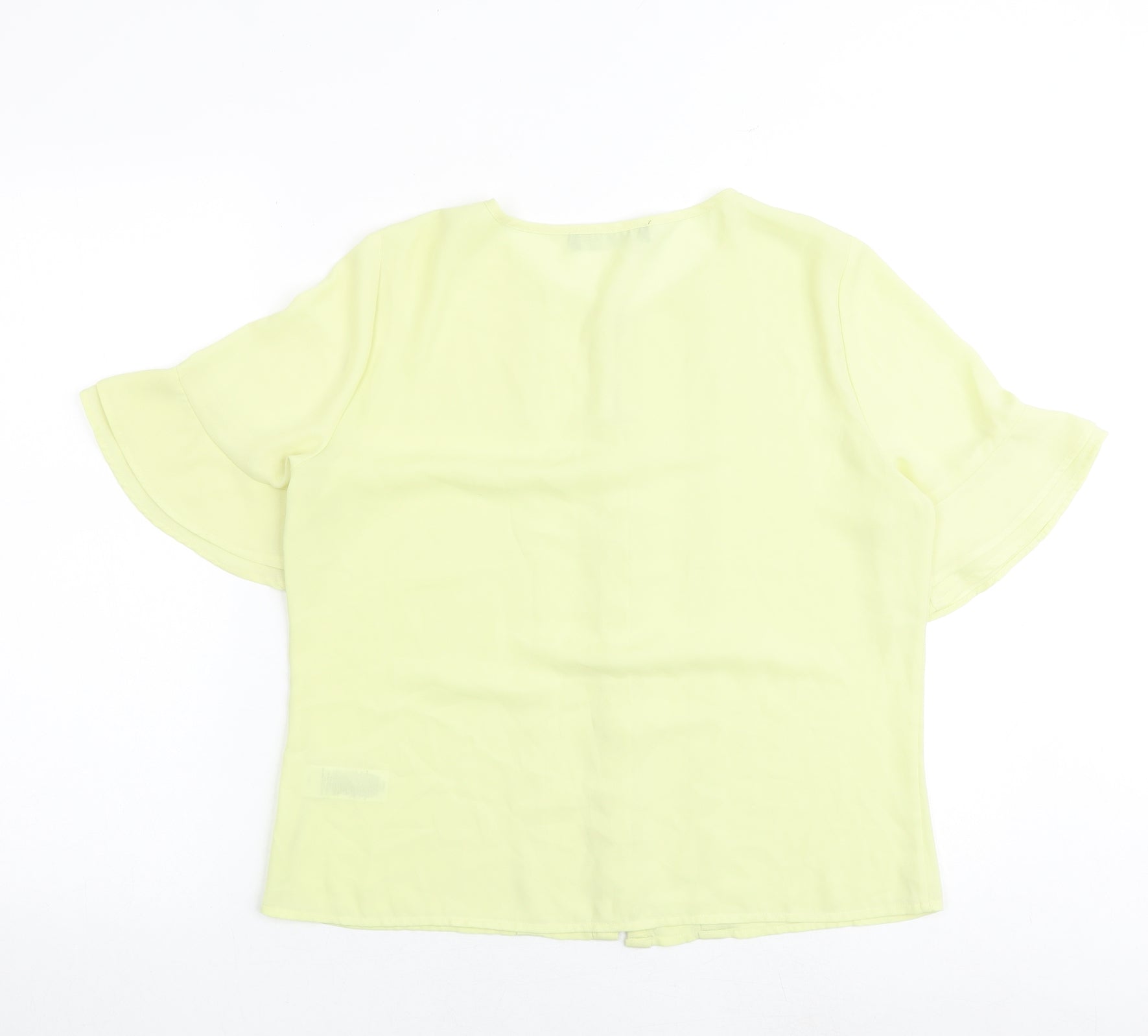Womens Yellow Polyester Basic Button-Up Size 12 Boat Neck
