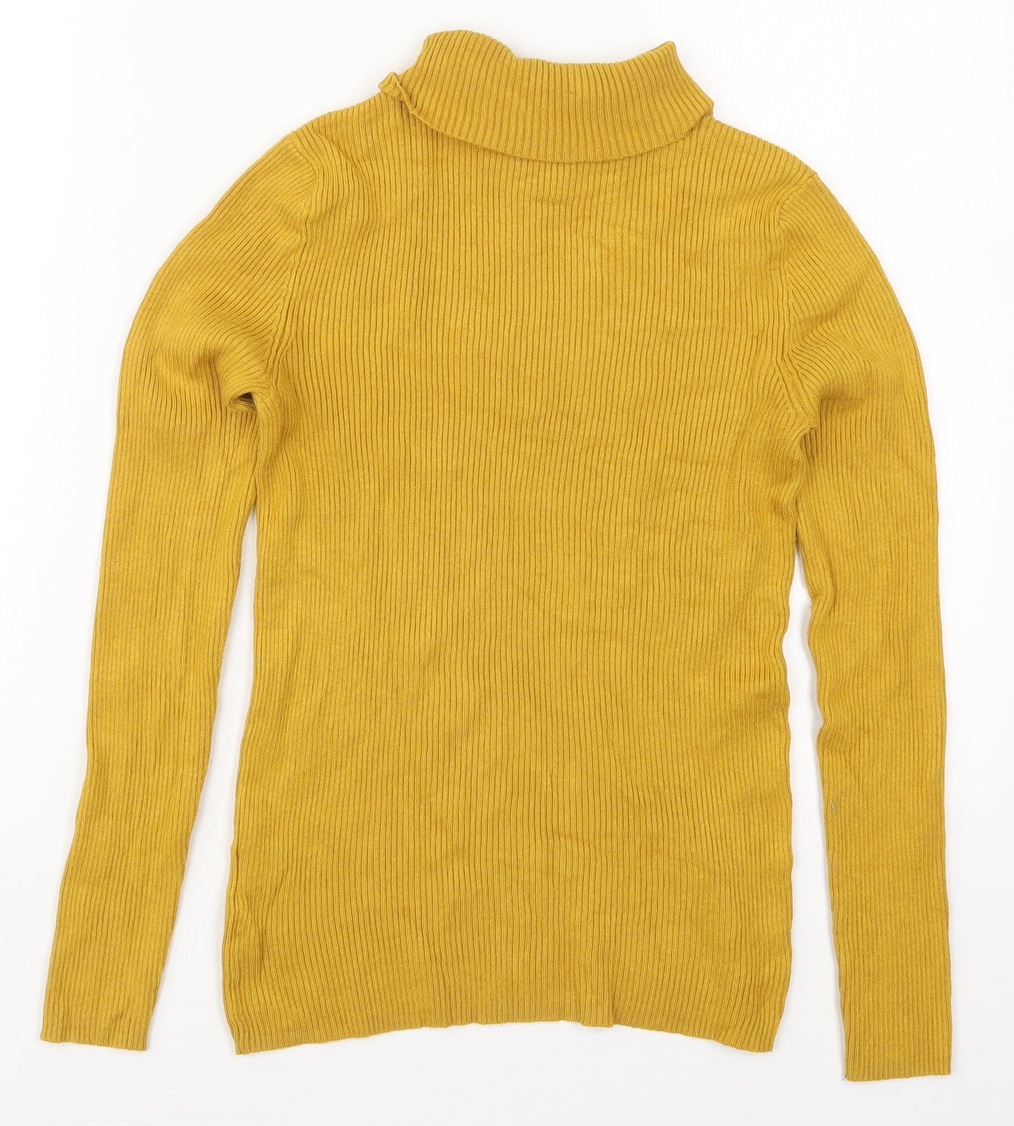 Womens Yellow Roll Neck Viscose Pullover Jumper Size 10