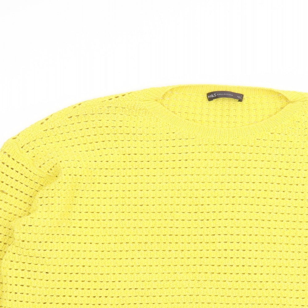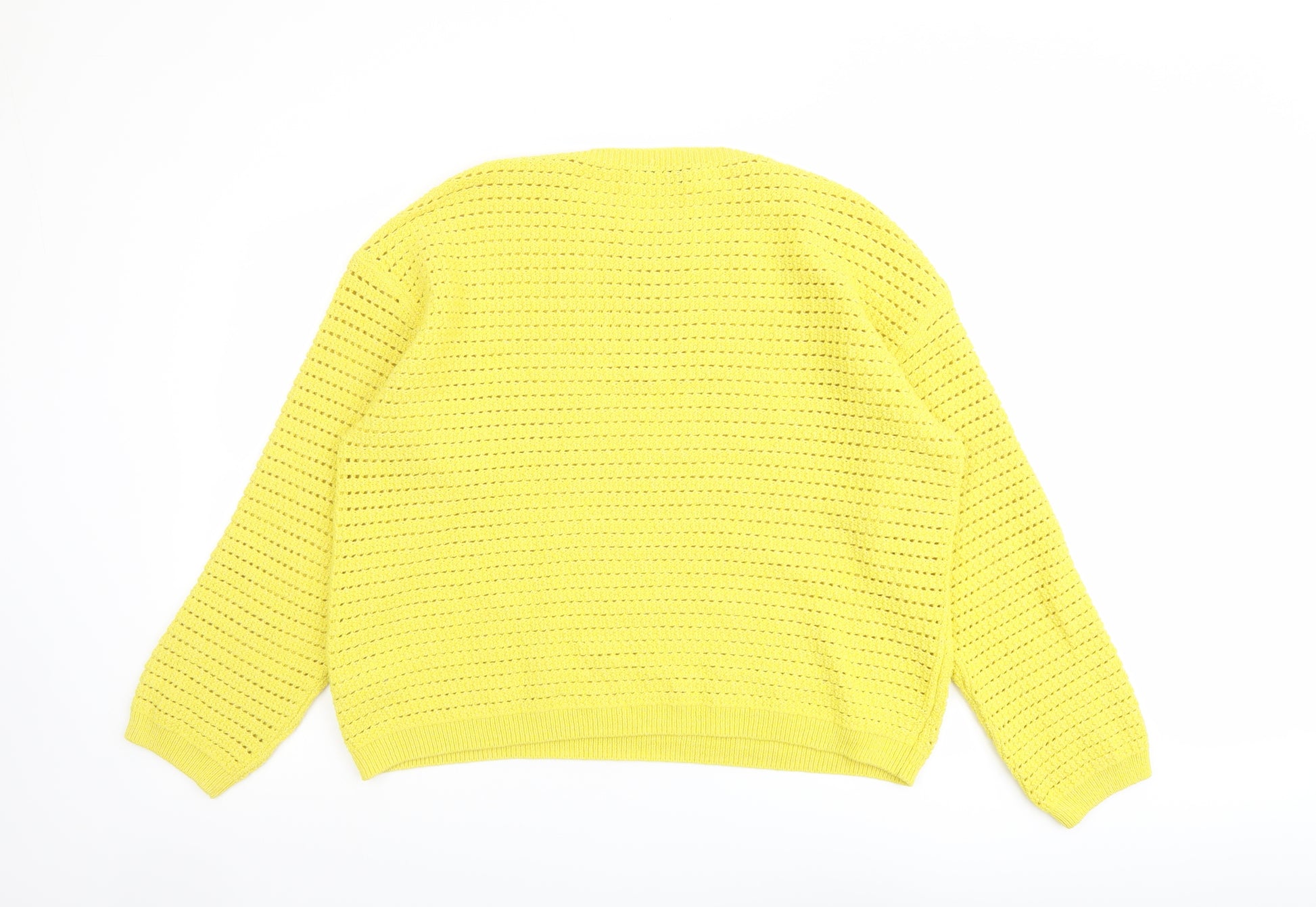 Womens Yellow Round Neck Cotton Pullover Jumper Size L