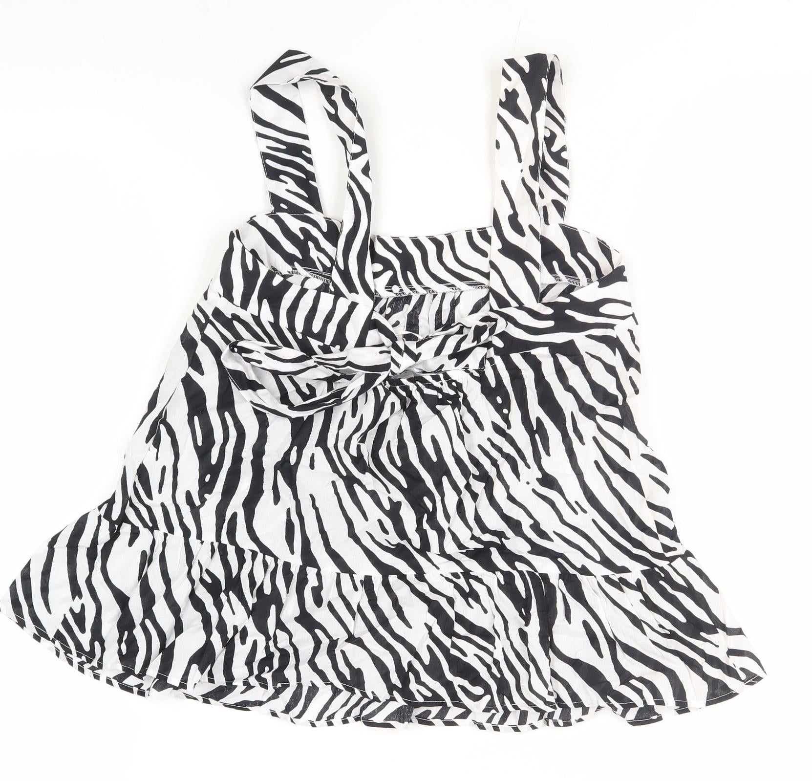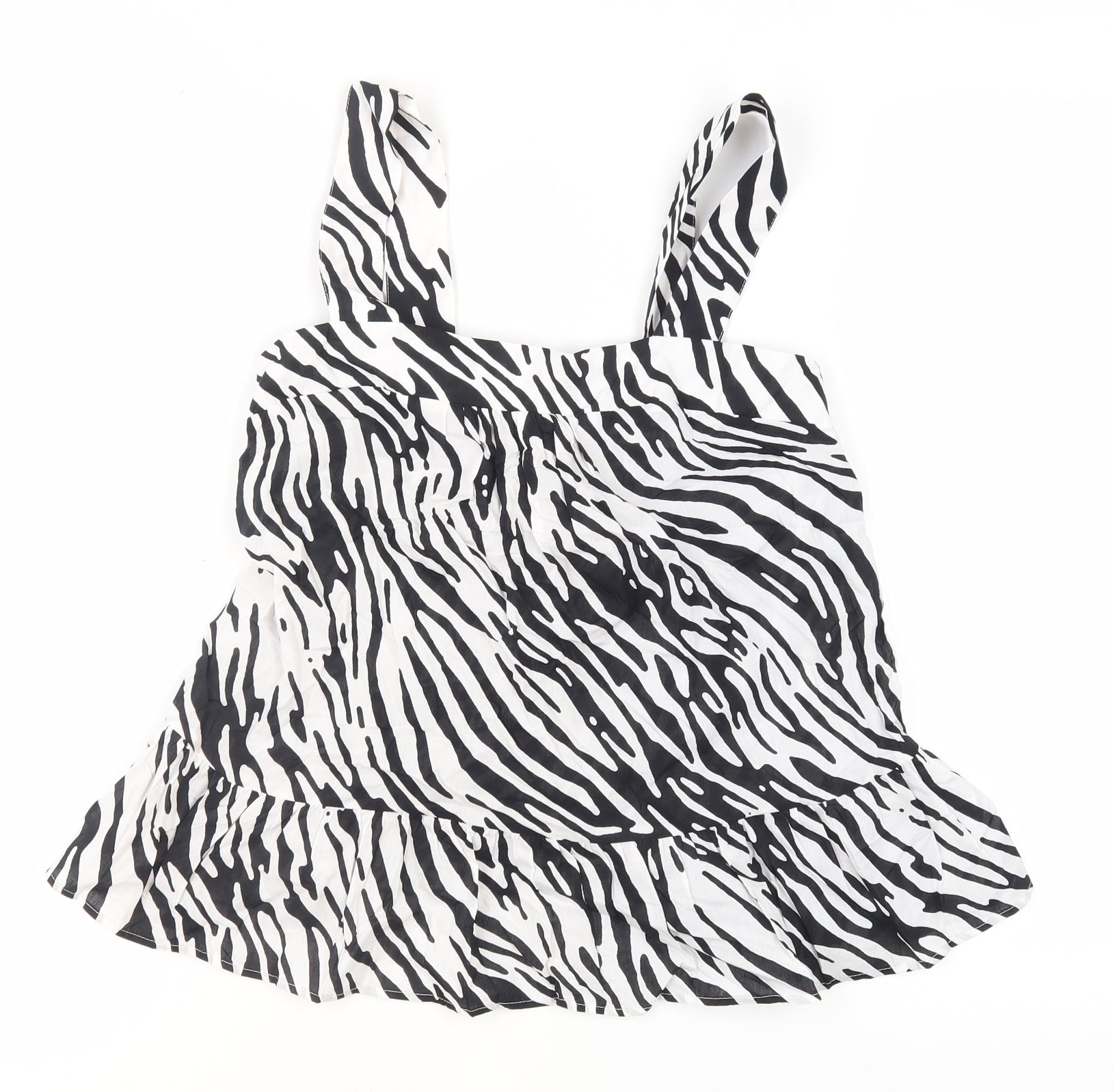 Dive into the wild side with this stunning zebra print blouse from Marks and Spencer. Crafted for women who love to make a statement, this sleeveless camisole style blouse is an impeccable choice for casual outings. The blouse is fashioned in a blend of black and white, bringing to life the bold and fashionable zebra pattern. Made from 100% cotton, it not only ensures comfort and breathability but also promises durability throughout the summer months. The wide straps enhance support and style, forming a classic square neckline that flatters your shoulders. Maintaining this piece is effortless; it's machine washable, making it a perfect pick for everyday wear. With its regular fit and regular size type, this top provides a comfortable yet chic appearance. Ideal for those looking to add a thematic touch to their wardrobe, this animal-inspired piece is set to revamp any collection. This new with tags item is in pristine condition, promising a fresh addition to your wardrobe. Priced advantageously at £14.00, this fierce number is a perfect fit for those spontaneous summer outings or casual gatherings.