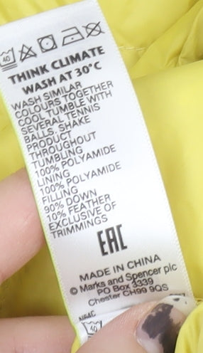Add a pop of sunshine to your wardrobe with this delightful yellow waistcoat from Marks and Spencer, designed to provide both warmth and style for the autumn and winter seasons. This women's waistcoat, available in size 22, features a sleek and modern sleeveless design, perfect for casual outings or a day in town. Crafted with a durable polyamide outer shell, this piece ensures longevity and a comfortable fit, while the full zip closure makes it easy to layer over your favourite outfits. The waistcoat is insulated with down and feather materials, providing the perfect amount of warmth without excess bulk, making it ideal for chilly days when style is still a priority. With a clean, no-pattern appearance, this waistcoat offers versatility, allowing you to pair it seamlessly with various colours and styles present in your wardrobe. Its mid-length cut adds an elegant touch, enhancing the overall silhouette. No need to worry about care; this waistcoat is machine washable, making it easy to maintain its bright, cheerful hue. Experience the quality and style of Marks and Spencer with this excellent condition waistcoat, ready to elevate your seasonal wardrobe. Priced affordably, it offers great value for a high-quality piece that is sure to become a staple in your collection. Whether you're out for a casual day or layering up for added warmth, this waistcoat provides the perfect blend of comfort, style, and functionality.