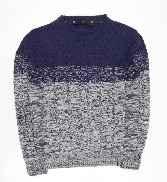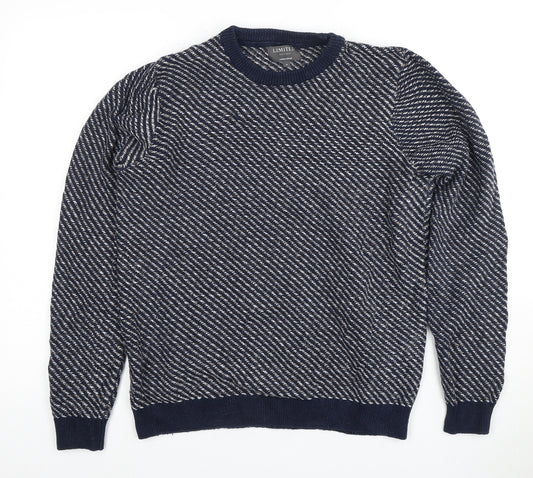 Mens Size M Cotton Blend Striped Blue Crew Neck Jumper