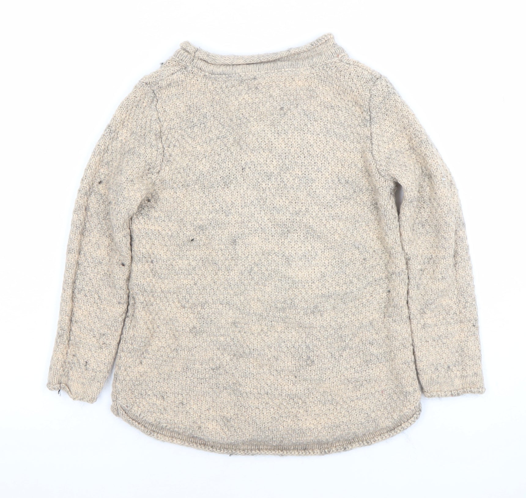 Bring fun and cosiness to your little one's wardrobe with this adorable Marks & Spencer Kids jumper. Designed in a warm beige knit, this charming pullover features a soft wool blend for a comfortably warm and breathable fit, perfect for cooler autumn and winter days. The jumper showcases a delightful fox motif on the front, detailed with sparkling sequins in red, gold and pink tones, adding a playful and eye-catching finish. The fuzzy-textured fox design gives it a lovely tactile appeal that children will love to wear.Crafted from a quality blend of wool, nylon and acrylic, the jumper combines softness with durability, holding its shape well through regular wear and washes. The round crew neckline and long sleeves keep it snug and practical for layering over shirts or under jackets, while the slightly longer back hem adds comfort and coverage. It’s machine washable for easy care, making it ideal for busy parents.This jumper fits UK size 5–6 years, offering a relaxed fit suitable for everyday wear, school days, playdates or casual family outings. With its neutral beige tone, it’s versatile to pair with jeans, leggings or skirts, while the fun fox motif ensures it remains the standout piece of any outfit.In very good pre-loved condition, this Marks & Spencer Kids jumper has only minor signs of wear such as gentle bobbling, with no marks, rips or major defects. It’s perfect for keeping warm and stylish throughout the colder months. A wonderful wardrobe addition that blends playful character flair with classic knitwear comfort, ready to delight any little fashion enthusiast.