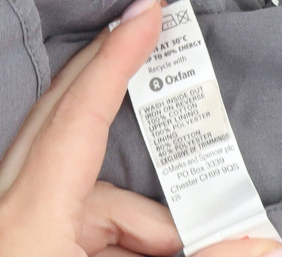 Adorn your young one in elegance with this Marks & Spencer Girls Grey Sequin A-Line Dress, perfect for those special occasions. Crafted from quality cotton with a polyester lining, this dress offers comfort and breathability along with a touch of glamour. The charming polka dot pattern, highlighted with sequins, brings a fun yet sophisticated look to your girl's wardrobe, making it ideal for party wear. Designed with a round neck and sleeveless strappy sleeves, this dress ensures a chic appearance. Its knee-length A-line silhouette provides both style and ease of movement, allowing your child to dance and play with absolute freedom. A convenient zip closure at the back makes dressing up quick and simple. Despite being in excellent condition, there are no original sales tags present. However, the dress showcases high-quality workmanship synonymous with the Marks & Spencer brand. Make this dress a staple for your child's wardrobe, ideal for parties, celebrations, and more. Get this delightful piece at an affordable price and let your little one shine at every event.