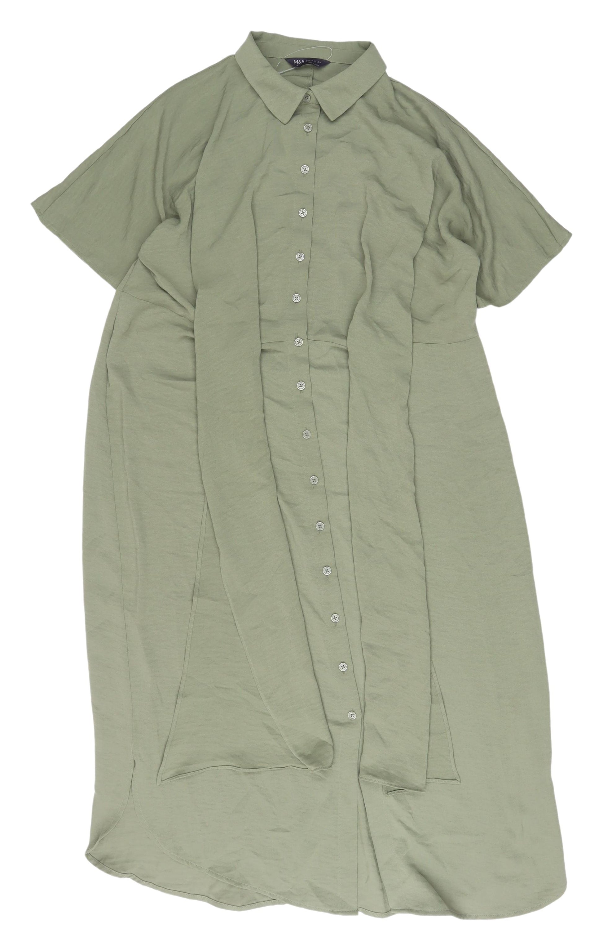 Marks & Spencer Green Shirt Dress - Size 14, Spring Classic