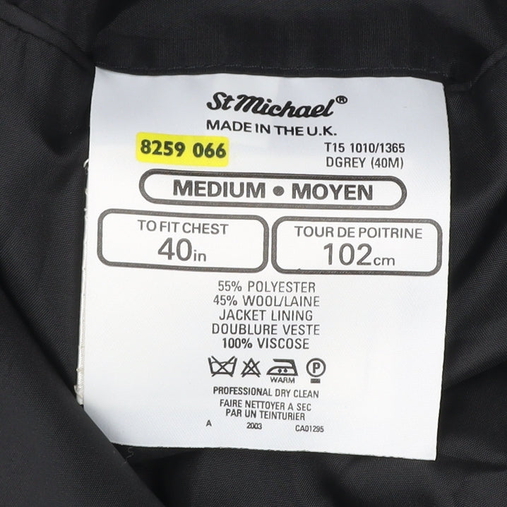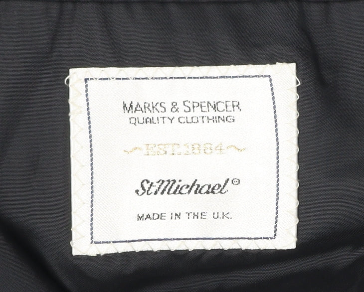 Step into timeless sophistication with this Marks & Spencer St Michael men’s blazer, a classic piece of tailoring crafted to elevate your wardrobe. Designed in a sleek black pinstripe pattern, this double-breasted jacket captures an enduringly stylish appeal that effortlessly works for both formal and professional occasions. The blazer is crafted from a premium wool blend, made up of 55% polyester and 45% wool, delivering the perfect balance of comfort, breathability, and durability. The interior is lined with smooth viscose to provide a polished finish and added comfort throughout the day. Tailored to a medium fit with a 40-inch chest, this jacket offers a regular cut and structured peak lapels that bring distinguished flair to its design. The double-breasted front closure, complete with six buttons, adds extra sharpness to your look, while the single vent at the rear allows for ease of movement without sacrificing clean lines. The blazer also features practical details such as inner pockets, making it as functional as it is stylish. The versatility of this piece makes it a true wardrobe essential. Its pinstripe pattern adds a subtle yet professional detail, ensuring it pairs seamlessly with trousers for formal wear, or can be adapted into a more relaxed, smart-casual style. Perfect for business meetings, weddings, and evening engagements, this blazer embodies traditional tailoring with a modern edge. Suitable particularly for the autumn and winter seasons, the wool blend fabric provides lightweight warmth whilst maintaining an elegant drape. Though in very good pre-loved condition, the blazer shows only the lightest signs of wear, making it an excellent option for anyone looking to own a refined piece of vintage St Michael tailoring with long-lasting value. Marks & Spencer’s heritage in quality menswear assures you of the durability and charm this blazer delivers. If you appreciate timeless British tailoring, this jacket is a standout addition to your collection.