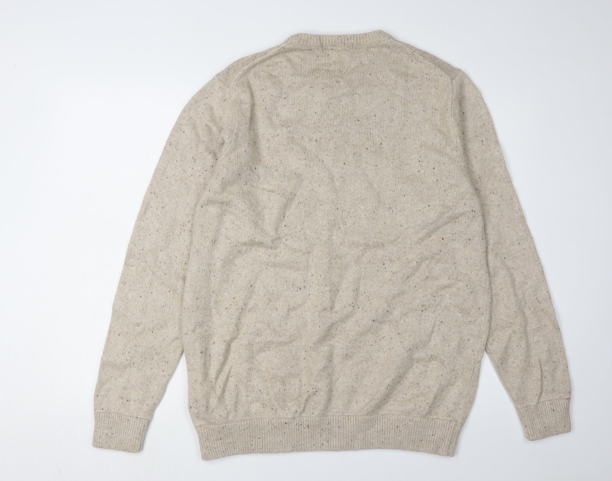 Marks and Spencer Men's Beige Wool Blend Crew Neck Jumper Size L