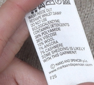 Discover the perfect blend of comfort and style with this Marks & Spencer Men's Pullover Jumper. Ideal for those cooler autumn and winter days, this jumper is crafted from a high-quality blend of polyamide, viscose, wool, angora, and cashmere, offering a luxurious feel with every wear. Featuring a classic crew neck and long sleeves, this beige jumper is both versatile and timeless. The material's breathable and lightweight nature ensures comfort without compromising on warmth, making it an essential piece for casual outings or cosy evenings at home. Its tight-knit pattern provides a clean and sophisticated look, free from any distracting prints or accents. This jumper fits regular sizes comfortably and is tailored to complement a range of body types. With its straightforward cleaning instructions and durable construction, it’s practical for everyday wear. Treat yourself or a loved one to this elegant jumper that effortlessly combines practicality with a touch of elegance. Perfect for pairing with jeans or slacks, this jumper will quickly become a staple in your autumn and winter wardrobe. Don't miss out on this Marks & Spencer essential that promises to keep you looking sharp and feeling warm all season long.
