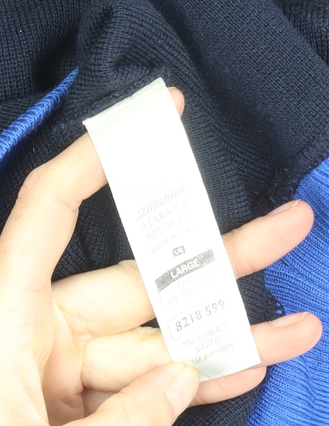 Marks and Spencer Mens Blue Lambswool V-Neck Jumper Size L