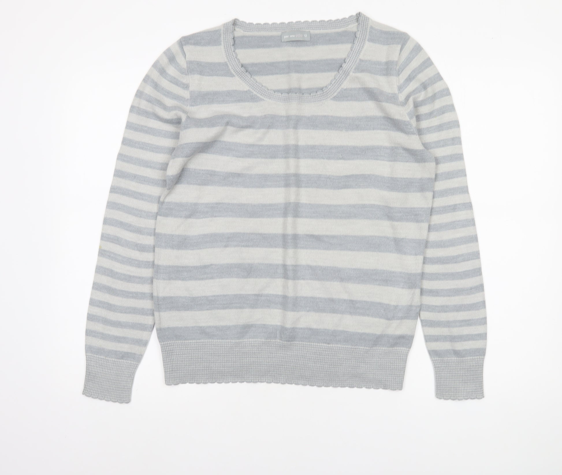 Marks & Spencer Per Una Women’s Grey Striped Acrylic Jumper Size 12