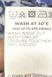 Introducing a stunning Marks & Spencer Women's Top in a vibrant blue geometric pattern, perfect for adding a pop of colour to your wardrobe. Crafted from 100% Viscose, this top offers a comfortable and lightweight feel, making it ideal for all-day wear. Designed in a regular fit, it flatters the silhouette while providing ease of movement. The intricate geometric pattern is eye-catching and adds a unique touch to this stylish piece. Ideal for casual outings or weekend get-togethers, this top is versatile and pairs well with jeans or skirts. Machine washable for easy care, you can enjoy this gorgeous top with minimal fuss. Brand new with tags, it's a great addition to any fashion-forward wardrobe. Treat yourself or a loved one to this beautiful Marks & Spencer top today.