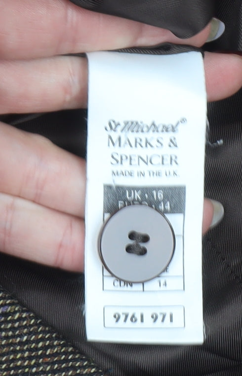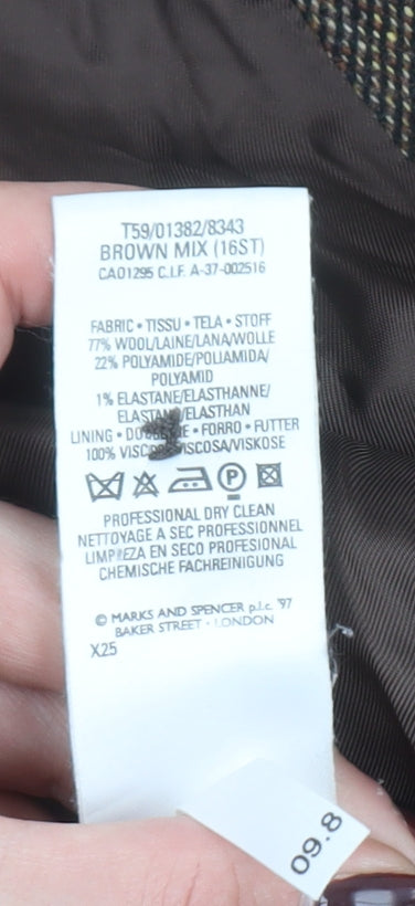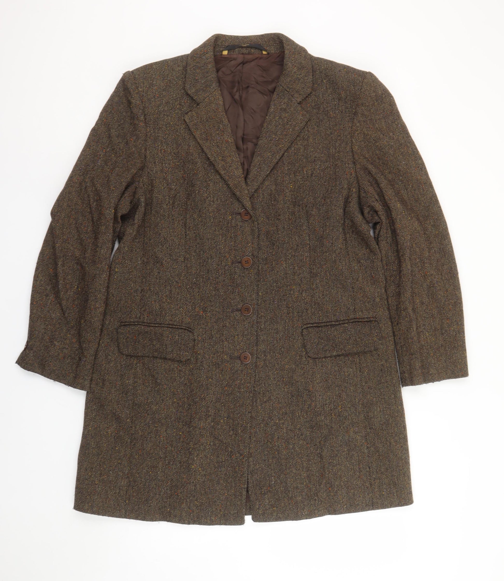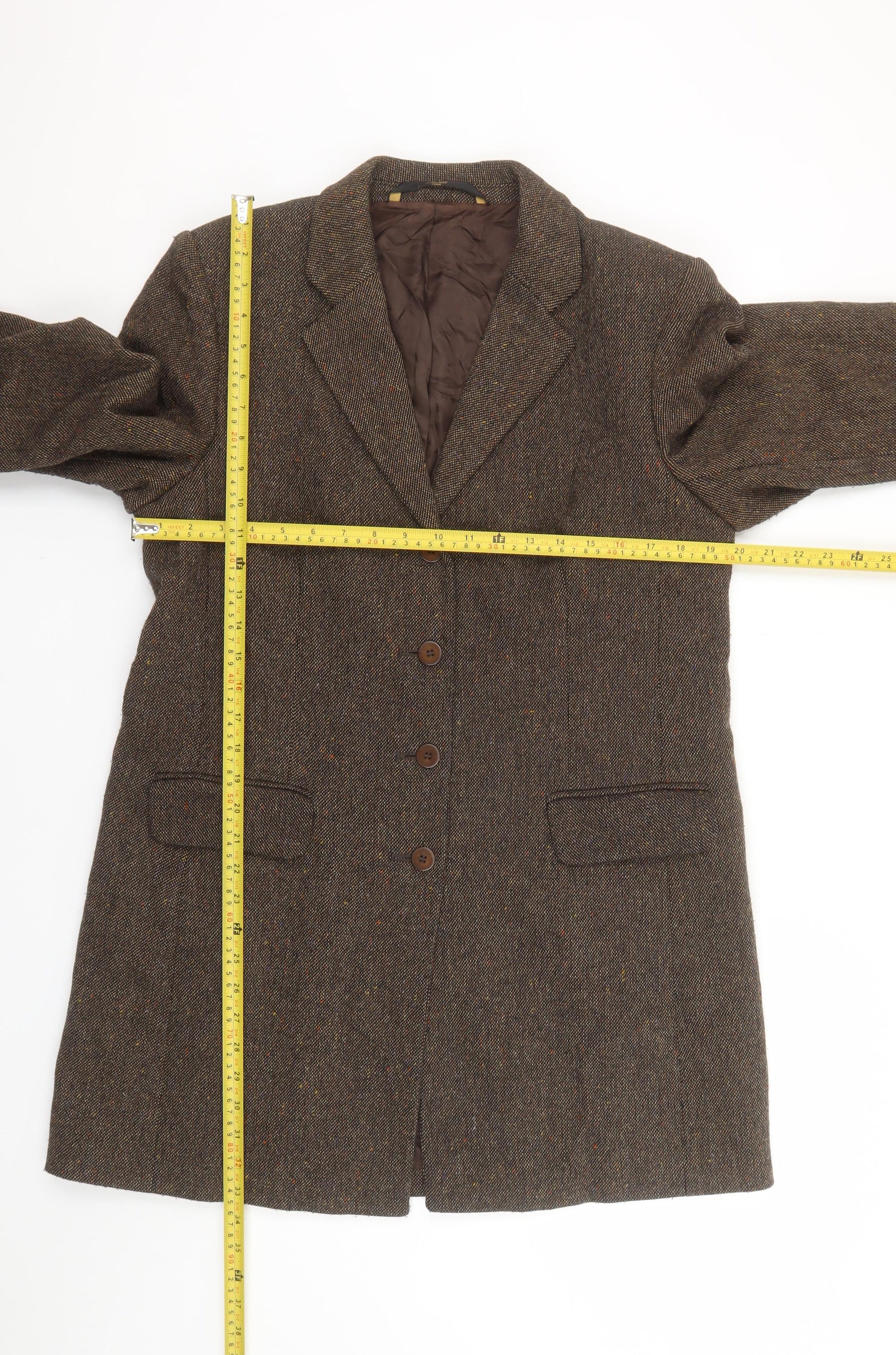 Marks & Spencer Women’s Brown Herringbone Wool Blazer UK 16 Classic Mid-Length Jacket