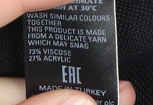 Introducing the Marks & Spencer Women's Black Cape Jumper in UK size 20, a perfect blend of style and elegance for the fashion-forward individual. This versatile cape-style jumper is designed to enhance your wardrobe with its sophisticated black colour, making it an ideal choice for any casual occasion. Crafted from a premium mix of viscose and acrylic, it boasts a lightweight and comfortable feel, ensuring you stay cosy and chic throughout the day. The tight-knit construction adds a touch of refinement, making it a must-have for every wardrobe. With its relaxed fit, this jumper lends a flattering silhouette, ideal for pairing with your favourite jeans or trousers. Whether you're running errands or enjoying a casual outing, this stylish piece ensures you do so with effortless grace. The jumper's new condition, complete with original tags, guarantees its premium quality and makes it an excellent addition to any collection. Elevate your wardrobe with this Marks & Spencer Women's Black Cape Jumper and experience the perfect blend of comfort, style, and durability. Don't miss the opportunity to add this timeless piece to your collection today.