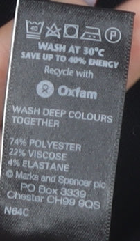 Elevate your wardrobe with this classic Marks & Spencer Women's Black Pencil Skirt, designed for both business and casual settings. Tailored to perfection in a knee-length style, it offers a sleek and sophisticated look. The elegant garment is crafted from a high-quality blend of 74% polyester, 22% viscose, and 4% elastane, ensuring comfort and a touch of stretch for everyday wear. With a straight and pencil silhouette, it seamlessly flatters your figure while the functional zip accent at the back adds a contemporary touch.Perfect for all seasons, this skirt features a chic black hue that pairs effortlessly with a variety of tops and shoes, making it a versatile addition to your clothing collection. Whether you're heading to a business meeting or a casual outing, this skirt adapts to any occasion with ease.Easy to care for, it's machine washable, making it a practical yet stylish choice for the modern woman. The skirt is sized at UK 16, ensuring a comfortable and proper fit. In excellent condition, this pre-loved piece shows no visible signs of wear, promising further years of stylish outings. Grab this fashionable and essential addition to your wardrobe today!