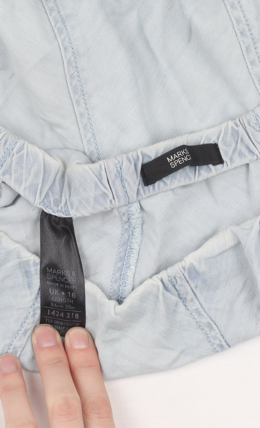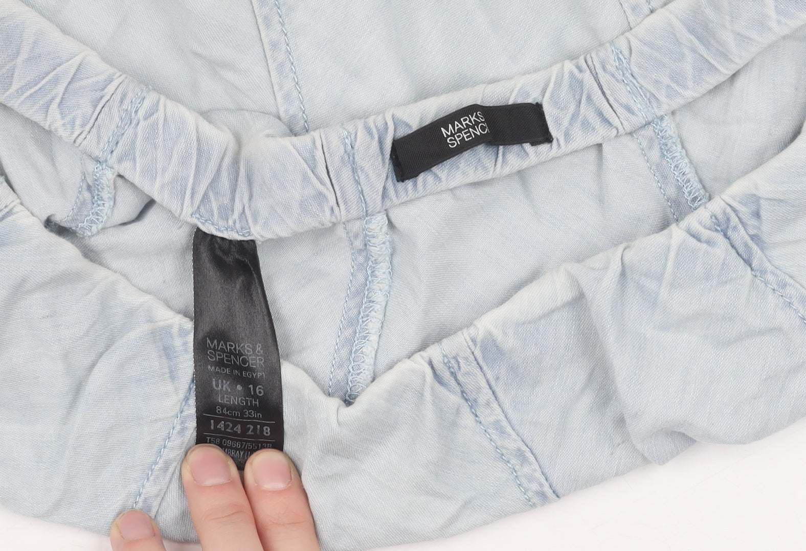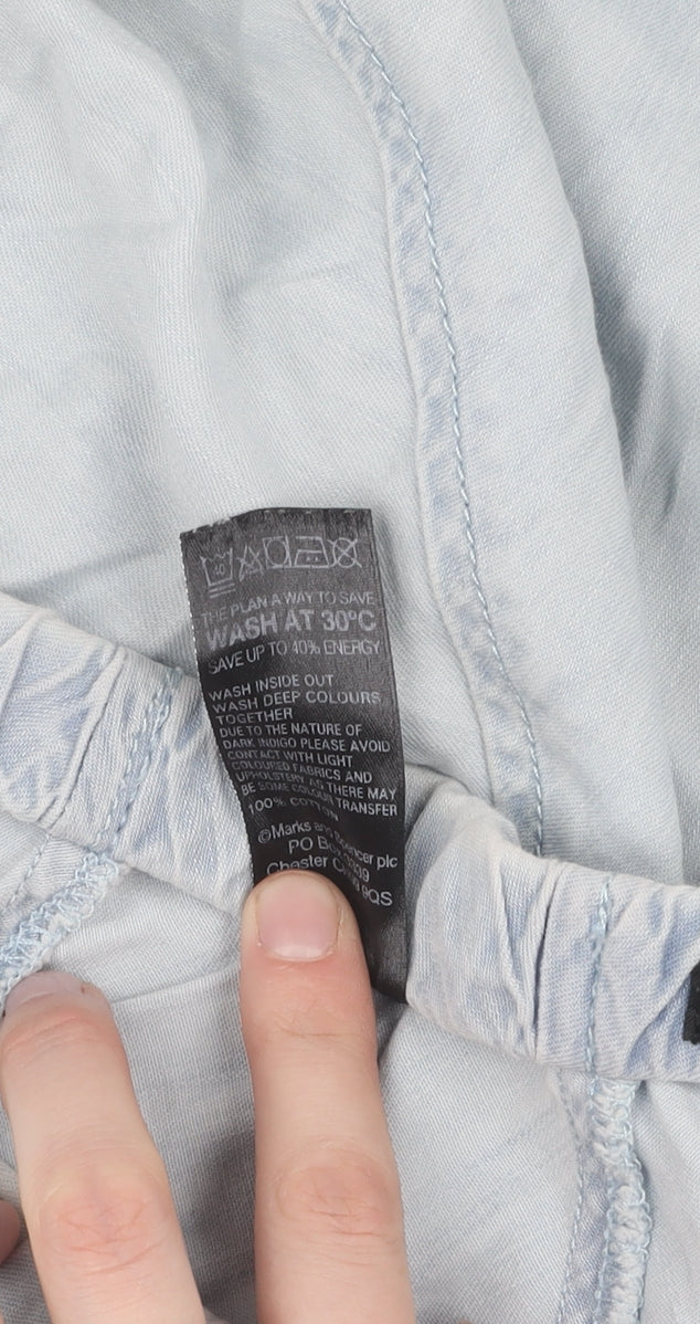 Step into comfort and style with this Marks and Spencer A-Line midi skirt, perfect for casual outings. Made from 100% cotton chambray, this skirt offers a soft and breathable feel, ideal for year-round wear. The classic blue hue and elastic waist make it a versatile addition to any wardrobe, ensuring a comfortable fit while maintaining effortless chic. Whether you're heading to a picnic or a casual day out, this skirt is sure to be your go-to choice. Easy to care for with a simple machine wash, this piece is both practical and fashionable. Embrace elegance with this staple skirt and elevate your everyday look.