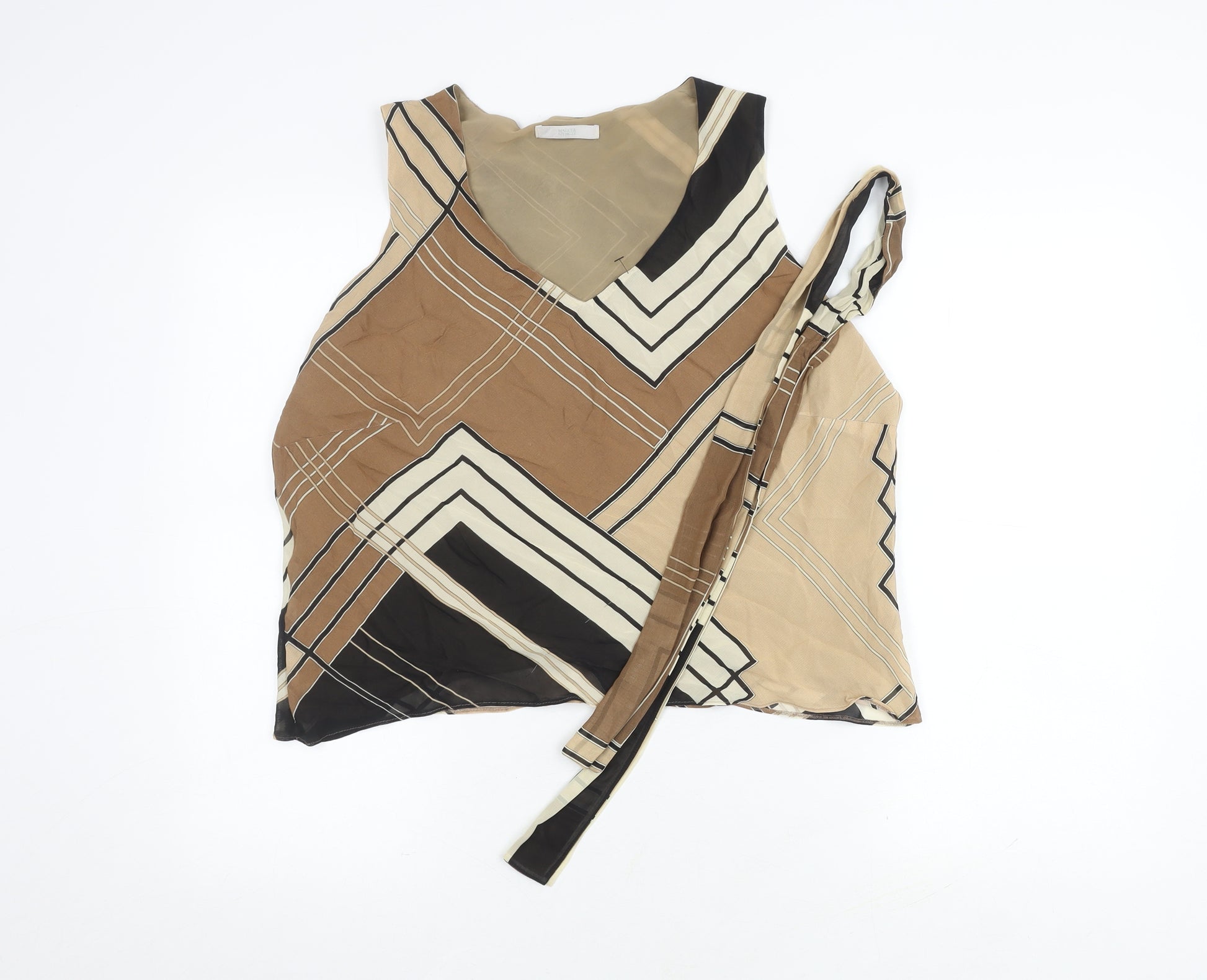 Enhance your wardrobe with this exquisite Marks & Spencer Women's Geometric Wrap Blouse, a perfect addition for any spring or summer ensemble. Crafted from 100% Viscose, this sleeveless blouse offers a lightweight and breathable fit, ensuring comfort with every wear. The multicoloured geometric pattern adds a touch of sophistication and style, making it versatile for both casual outings and chic gatherings. Designed with a flattering V-neckline, this regular-fit blouse accentuates your natural curves while providing an elegant profile. Its wrap style allows for easy pairing with your favourite trousers or skirts, offering a timeless and fashionable look. Machine washable for your convenience, this blouse combines easy care with sophisticated design. Its impeccable condition, without visible wear or damage, ensures you receive quality and durability. With a focus on style and comfort, this Marks & Spencer blouse is a must-have for fashion-forward individuals seeking to make a statement. Elevate your style today with this alluring geometric wrap blouse from one of UK's most respected brands.