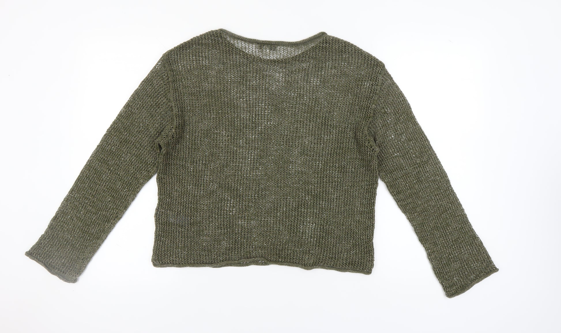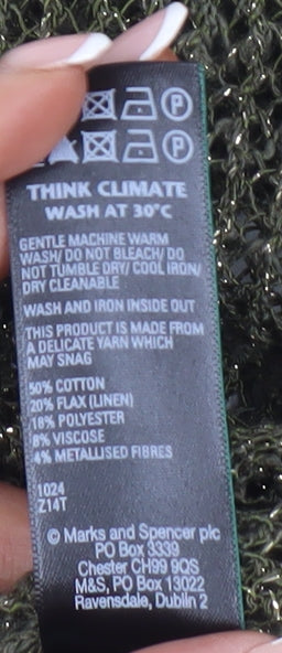 Discover comfort and style with this Marks and Spencer women's jumper. Crafted from a breathable blend of cotton, flax, polyester, and viscose, this green pullover offers a relaxed fit that's perfect for casual occasions. The open-knit style and crew neckline add a touch of elegance, making it a versatile piece for any wardrobe. Whether worn in spring, summer, or autumn, this jumper's lightweight fabric ensures you stay comfortably chic. Enjoy easy care with machine washable convenience, while the absence of patterns keeps it simple yet sophisticated. Embrace the quality and fashion only Marks and Spencer can offer, without compromising on style.