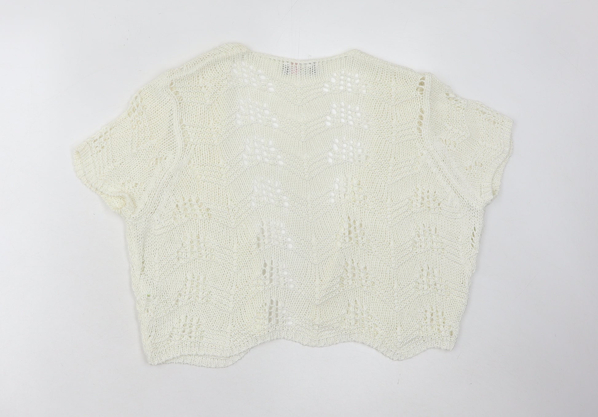Marks & Spencer Women's Ivory Open Front Cardigan Size 16 Open-Knit