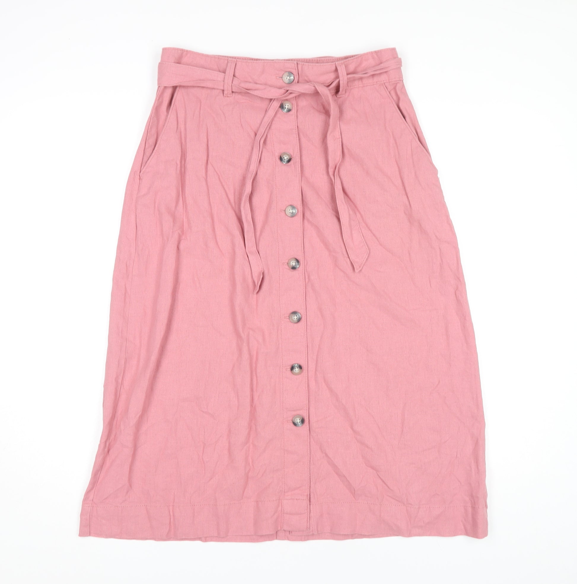Marks & Spencer Women's Pink Midi Skirt, Size 12, Button-Accent
