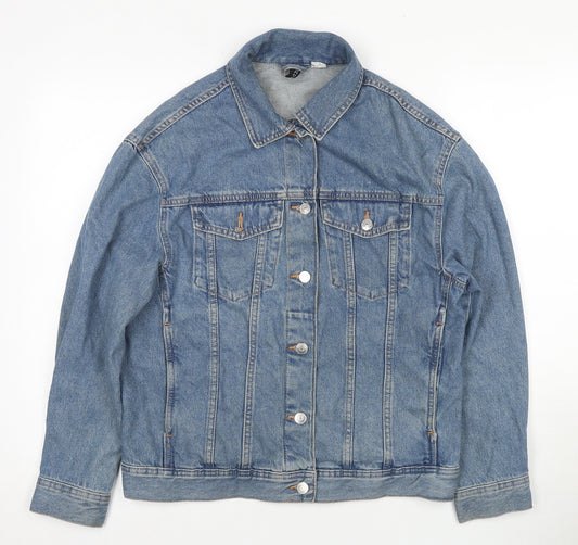 ZARA Women Blue Cropped Denim Jacket Size S Relaxed Fit
