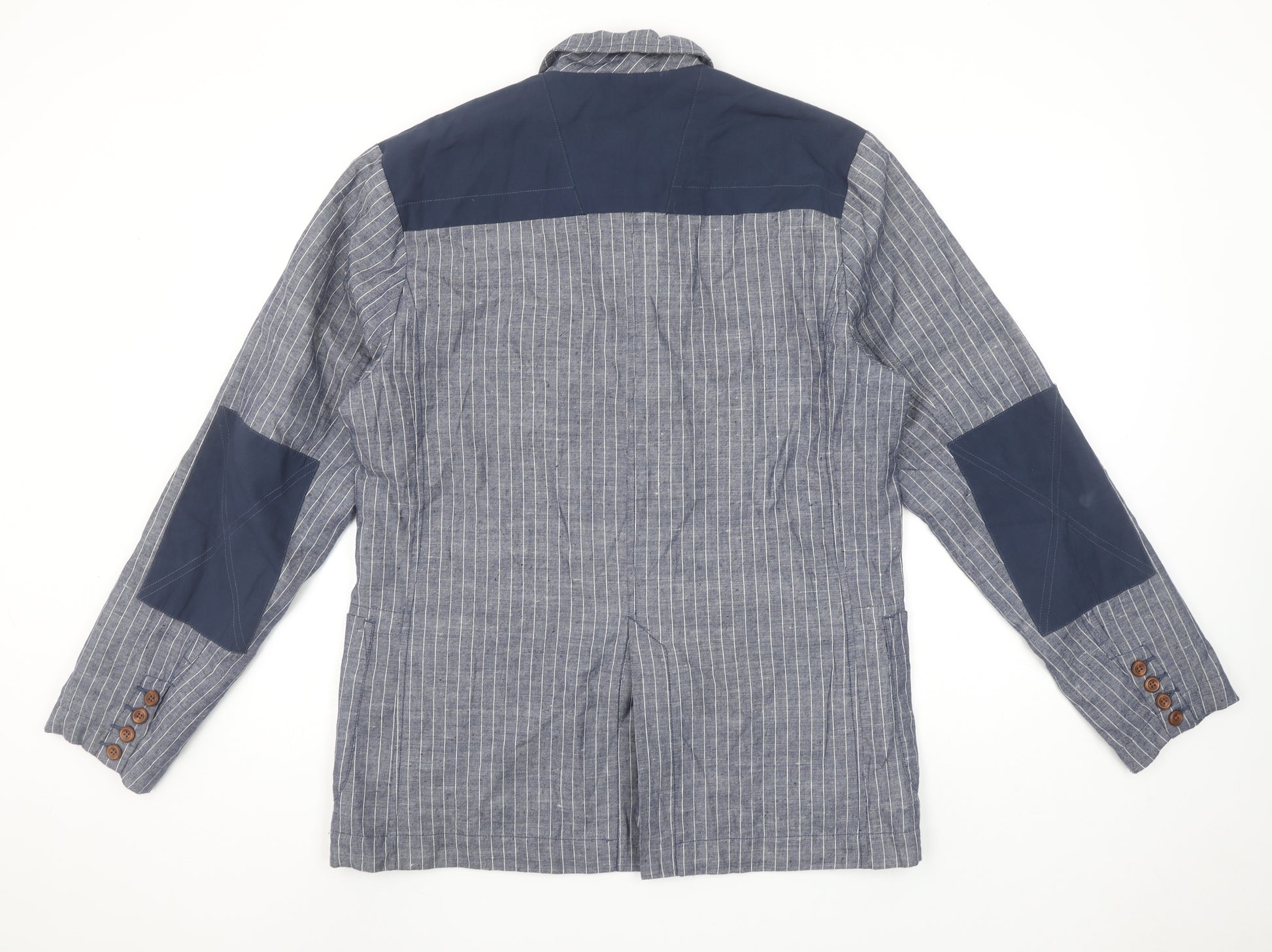 Men's Blue Striped Cotton Regular Fit Casual Blazer Jacket L
