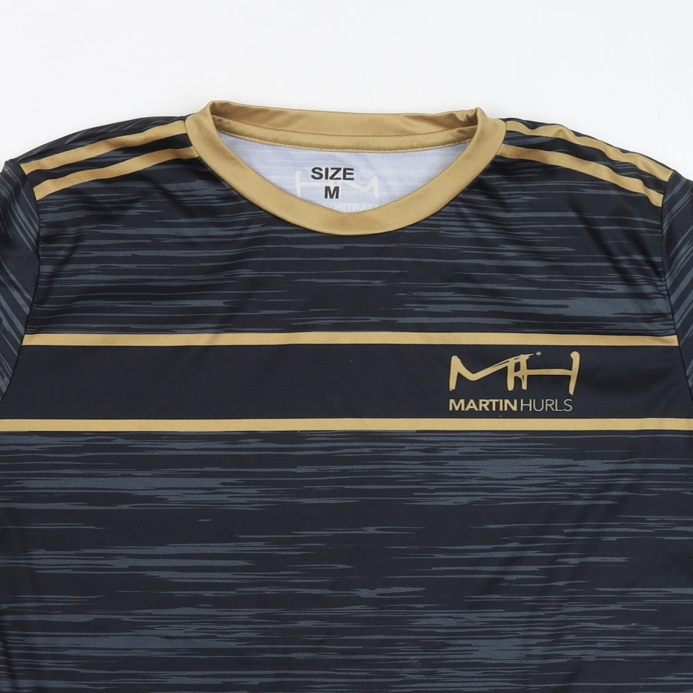 Mens Grey Polyester T-Shirt Size M Round Neck