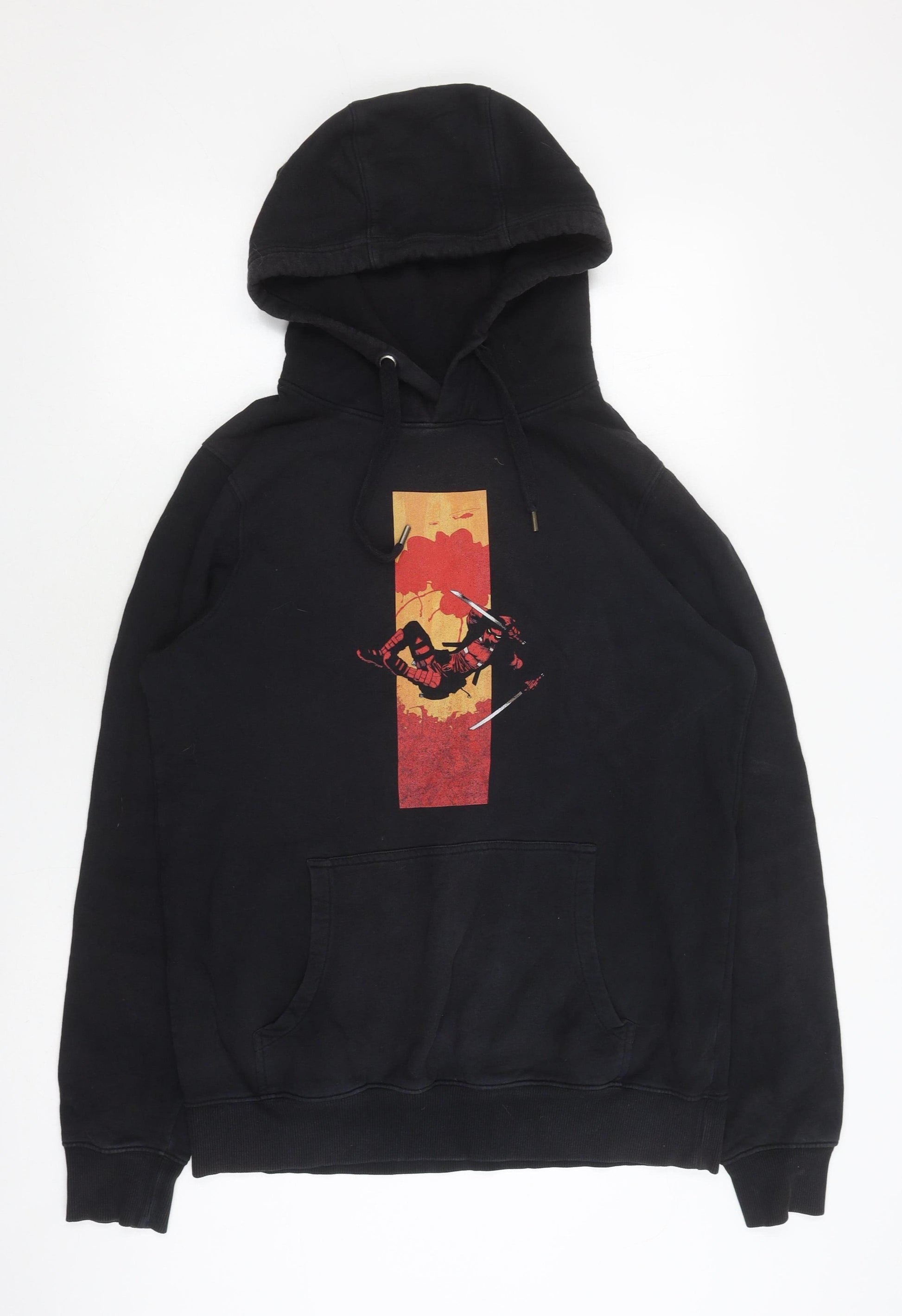 Dive into comfort and showcase your love for comics with this Marvel black pullover hoodie, tailored to suit unisex adults. Made from 100% organic cotton, this hoodie promises a soft and cosy feel perfect for those cooler autumn and winter days. Its regular fit and long sleeves ensure complete warmth and ease, making it a reliable go-to for any casual outing. The distinct graphic print adds a touch of character and flair, capturing the essence of your favourite superheroes. With a practical drawstring closure on the hood, adjustability is at your fingertips, offering additional protection against chilly winds. The sleek black colour pairs seamlessly with a variety of bottoms, whether you're running errands or lounging at home. Channel your inner hero with the hoodie's standout logo accent, a nod to iconic comic themes that resonates well with fans and fashionistas alike. Conveniently machine washable, maintain its pristine appearance effortlessly, ensuring day-to-day wear without worry. This piece constitutes not only a wardrobe staple but a statement of fan admiration, drawing attention and starting conversations. Comfortable, stylish, and easy to care for, relive your comic adventures as you step out in confidence and style. Upgrade your hoodie collection with this timeless gem now.