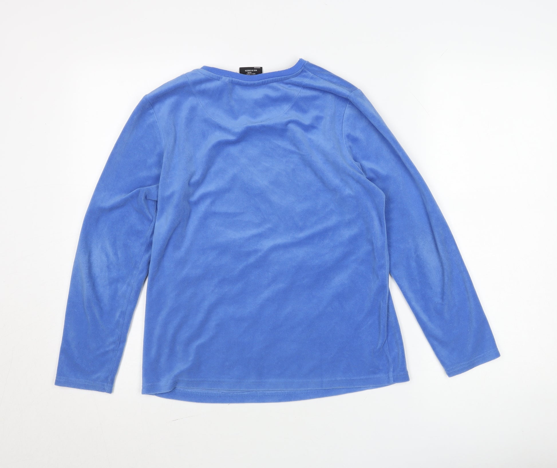 Keep bedtime fun and cosy with this officially licensed Marvel Boys Black Panther Pyjama Top, perfect for young superhero fans. Crafted in a soft and comfortable blue velour fabric, this long sleeve pyjama top offers a snug and warm feel, ideal for cooler autumn and winter nights. The bold front design showcases the iconic Black Panther graphic above the classic Marvel logo, making it a standout piece for bedtime or lounging. Designed with a crew neckline and an easy pullover style, this pyjama top provides both comfort and convenience. The durable 100% polyester material ensures long-lasting wear and easy maintenance, as it is machine washable. Sized for boys aged 11-12 years (approximately 152 cm), it offers a relaxed fit that allows for freedom of movement during sleep or play. Whether paired with matching pyjama bottoms or worn casually for a relaxed evening at home, this Marvel pyjama top combines playful design with practicality. The lightweight and soft velour texture adds a touch of luxury, while the vibrant blue colour and graphic print make it appealing to any young Marvel enthusiast. Ideal as a gift for fans of the Marvel Universe or for everyday nightwear, this top embodies the excitement of superhero adventures while providing bedtime comfort. Given its excellent condition and eye-catching design, it’s a great addition to any boy’s sleepwear collection. This Marvel Black Panther Pyjama Top ensures your young hero is ready to dream big while wrapped in the comfort of their favourite superhero’s style.