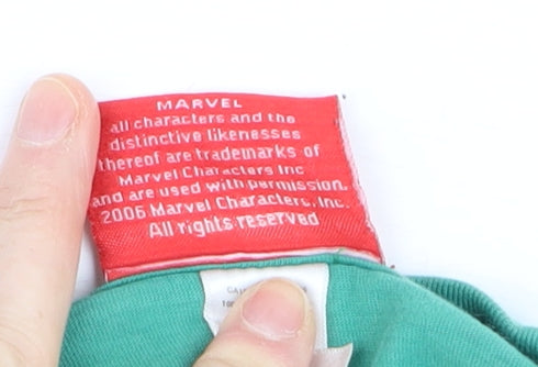 Bring a touch of Marvel magic to your youngster's wardrobe with this bold and characterful green Iron Man T-shirt. Designed in the UK, this short sleeve tee features an eye-catching Technics x Marvel collaboration print, showcasing Iron Man as a DJ in a fun and unique comic-style design. Made from 100% cotton jersey, it’s soft, breathable and perfect for everyday comfort. The crew neck and regular fit make it ideal for a relaxed, stylish look that works just as well for playtime as it does for casual outings. The bright green hue adds vibrancy, pairing effortlessly with denim, joggers or shorts. Crafted for durability and easy care, this Marvel tee is machine washable and built to handle active days. Whether your child is a little superhero in training or simply loves bold graphic prints, this shirt delivers both cool style and practical comfort. With its lightweight cotton fabric, it’s ideal for the warmer seasons from spring through summer, yet can easily be layered under hoodies or jackets on cooler days. Perfect for fans of Iron Man and the wider Marvel Universe, this T-shirt captures the fun, energetic spirit of the brand while adding a trendy twist with the Technics DJ theme. It’s a must-have addition for kids who enjoy music, comics, and lively character-inspired fashion. This item is in excellent pre-owned condition without any marks or wear, offering great quality at a fantastic value. Make this limited edition Marvel tee a wardrobe favourite – perfect for casual days, superheroes in training, or adding a splash of personality to any outfit.