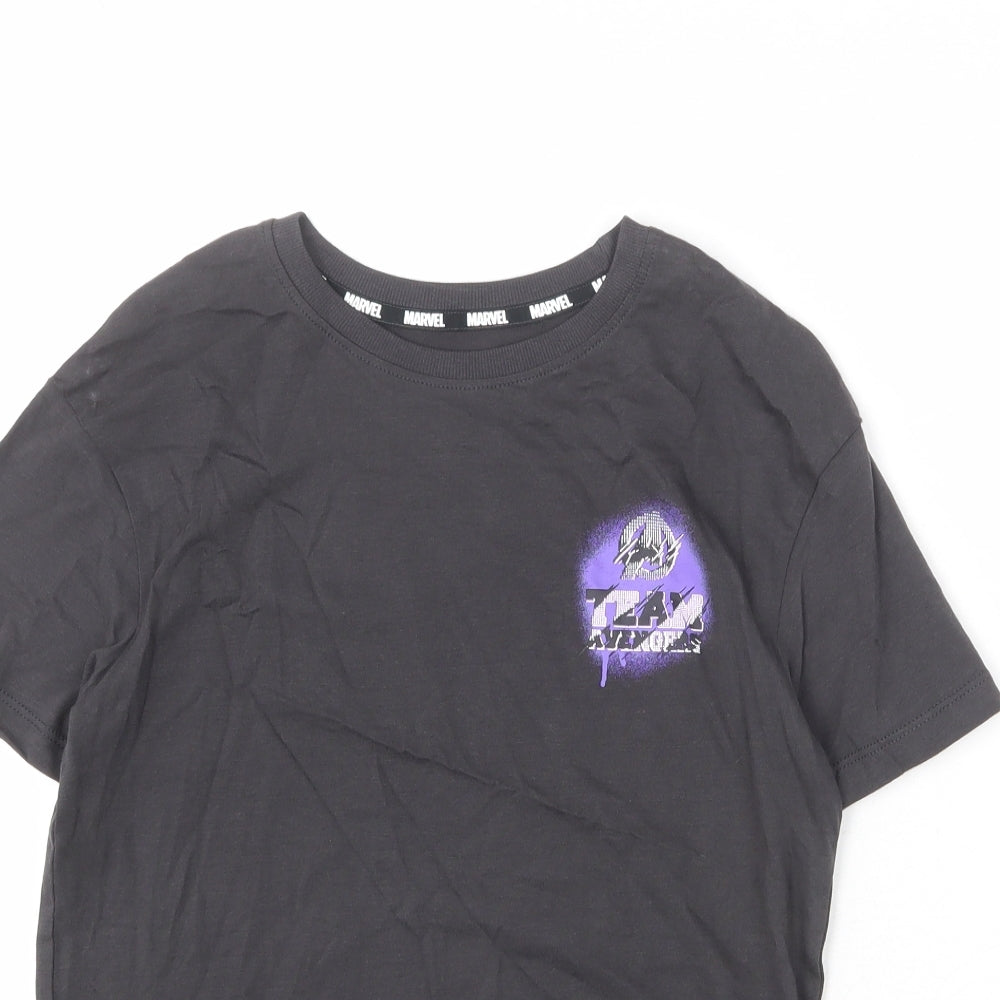Boys Grey Cotton Basic T-Shirt Size 9-10 Years Round Neck Pullover - Avengers