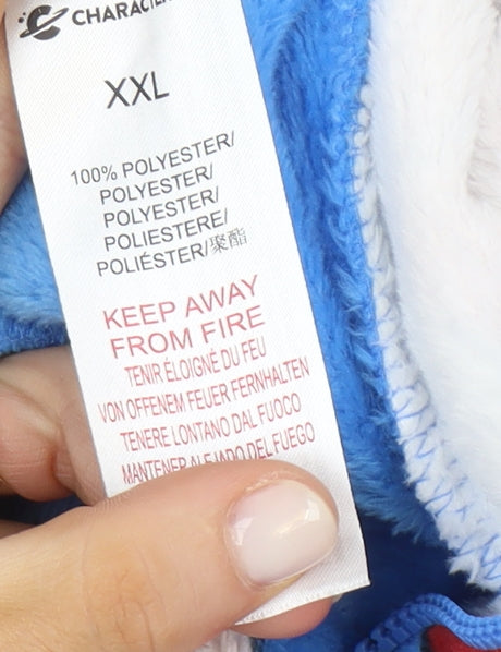 Get cosy in superhero style with this Marvel Captain America Men's XXL Hooded Onesie. Crafted from soft fleece fabric, this full-length one-piece provides ultimate comfort for lounging or sleep. The bold blue design features Captain America's iconic red, white, and brown uniform print, complete with a large white star emblem and belt details, bringing the hero’s look to life in a fun, wearable form. The onesie has a full zip closure for easy wear and removal and features a hood lined in red fleece for extra warmth on cooler nights. Made from 100% polyester, it’s light yet insulating, ideal for relaxing through the winter months. Branded with the official Marvel label, it’s a must-have for fans of the Avengers or anyone who appreciates novelty sleepwear with personality. The long sleeves and cuffed ankles help retain cosy warmth throughout the night, while its roomy cut provides a comfortable, relaxed fit suitable for lounging around the house. This XXL size offers generous proportions for a comfortable fit across the chest and shoulders. The fleece fabric provides a soft texture against the skin with easy machine-washable care for low maintenance. In very good used condition with only a light mark on the back leg, it retains excellent appeal for everyday comfort and themed-nightwear enthusiasts alike. Whether relaxing on the sofa or preparing for a superhero movie marathon, this Captain America onesie is sure to make downtime fun and heroic. Perfect for gifting or adding to your collection of character sleepwear essentials. For winter, loungewear, or themed nights, it combines comfort, warmth, and style inspired by the iconic Marvel character. Priced affordably for quality and brand recognition, this is an ideal choice for casual sleep or lounging in unmistakable superhero fashion.