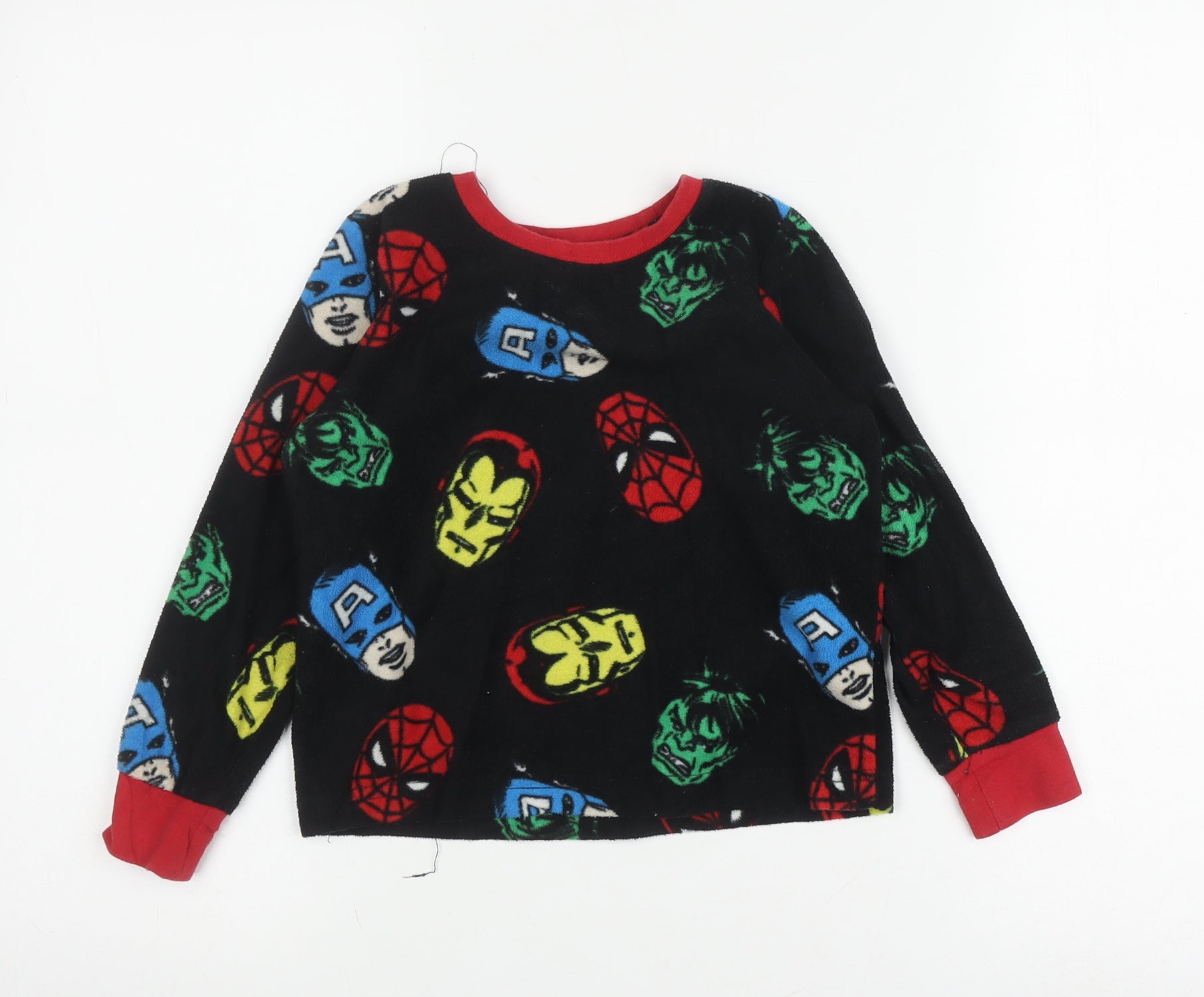 Embrace the power of the Marvel Universe with this fantastic boys' pyjama top. Designed by Marvel Comics, this black fleece pyjama top is perfect for budding superheroes. Tailored for comfort and style, it features vibrant graphic prints of beloved characters like Spider-Man, Iron Man, Captain America, and Hulk, making it an exciting addition to any young fan's nightwear collection. The long sleeves provide extra warmth, ideal for chilly nights, while the round neckline ensures ease of wear and comfort. Crafted from soft polyester fleece, this top ensures a cozy sleep, allowing your child to dream of adventures with their favorite superheroes. The pyjama top is part of a 2-piece set, offering versatility and mix-and-match options with other nightwear items. Though not new with tags, this top is in excellent condition, indicating minimal previous wear. Enhance your child's bedtime routine with this engaging, superhero-themed pyjama top. It's a perfect gift idea for birthdays or a delightful treat for any occasion. Available now to provide countless nights of superhero fun and comfort.