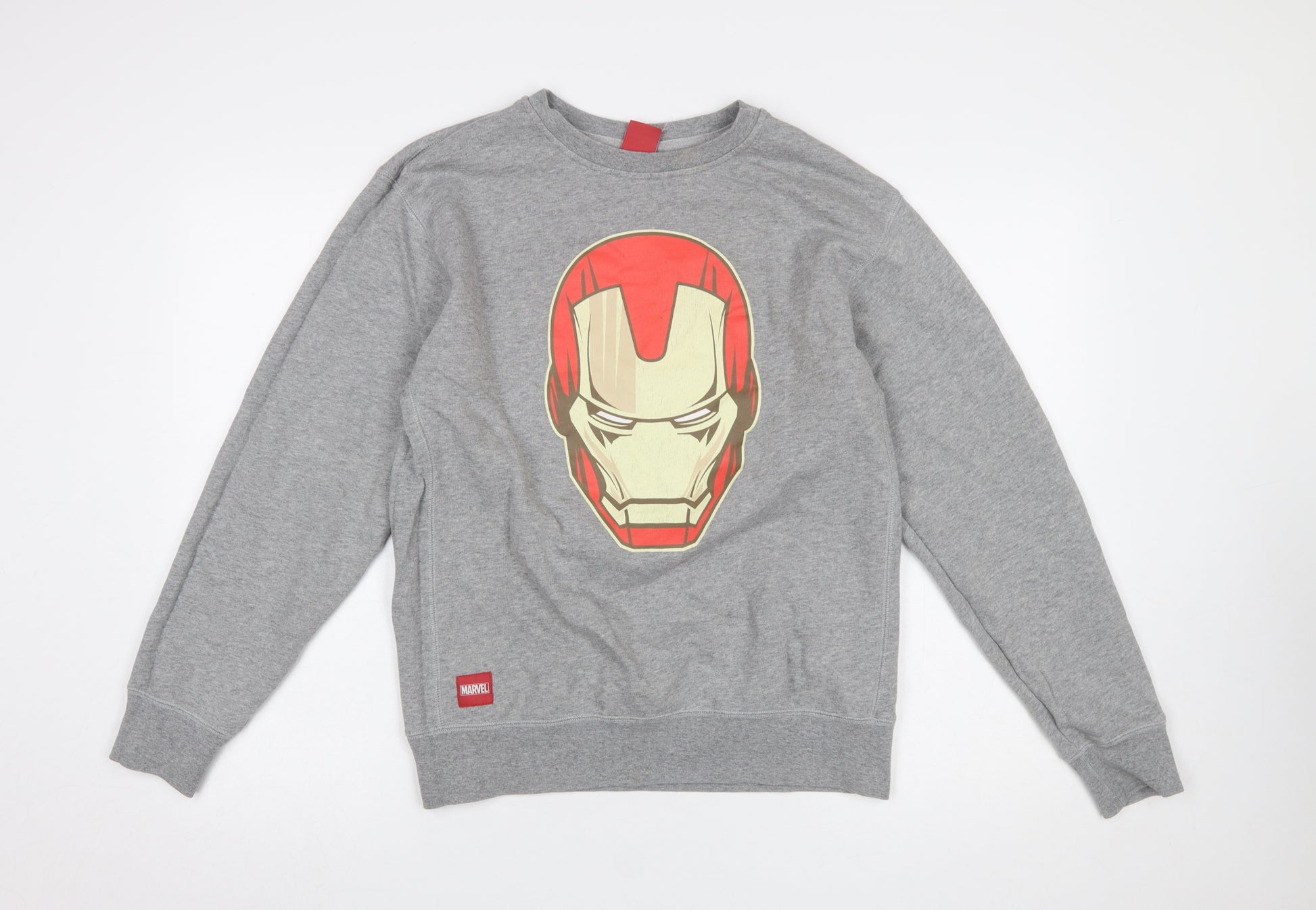 Show your love for Marvel’s legendary Avenger with this stylish men’s grey Iron Man sweatshirt. Crafted by Marvel, this pullover sweatshirt features a bold graphic print of Iron Man’s iconic helmet placed prominently on the front, perfect for fans of comics and superhero movies alike. Made from a soft cotton and polyester jersey blend, the fabric provides both comfort and durability, making it ideal for everyday wear during the autumn, winter, and spring seasons. The lightweight yet cosy design ensures all-day comfort, while the classic crew neck and long sleeves offer a timeless, easy fit suitable for casual layering. The sweatshirt comes in size Large and features a regular fit, suitable for most builds, providing just the right amount of room for relaxed wear without feeling oversized. With a subtle logo accent near the hem and a simple pullover style, it’s a low-maintenance piece that exudes casual cool. The machine washable fabric allows for hassle-free garment care. Perfect for fans of comic book heroes or those who appreciate a versatile graphic sweatshirt, this piece pairs seamlessly with jeans, joggers, or shorts. Whether worn at home, out and about, or to themed events, it makes a thoughtful gift or an excellent wardrobe addition. The item is in excellent pre-loved condition with no visible signs of damage — just gentle previous wear, maintaining its vibrant graphic and shape. Combining quality materials, comfortable construction, and superhero-inspired design, this Marvel Iron Man sweatshirt offers iconic style and everyday practicality for any fan or fashion enthusiast. Don’t miss the chance to add this standout piece to your casual collection.