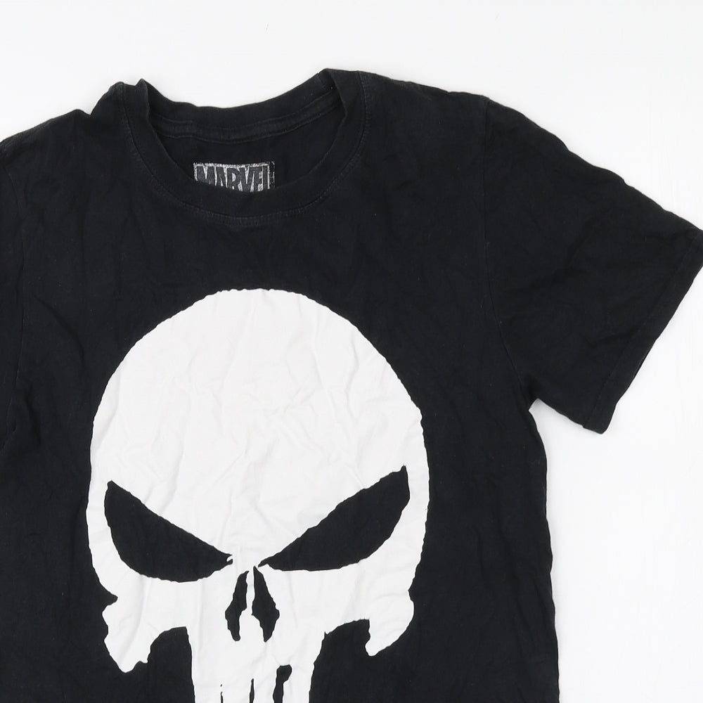 Mens Black Cotton T-Shirt Size S Round Neck - Skeleton
