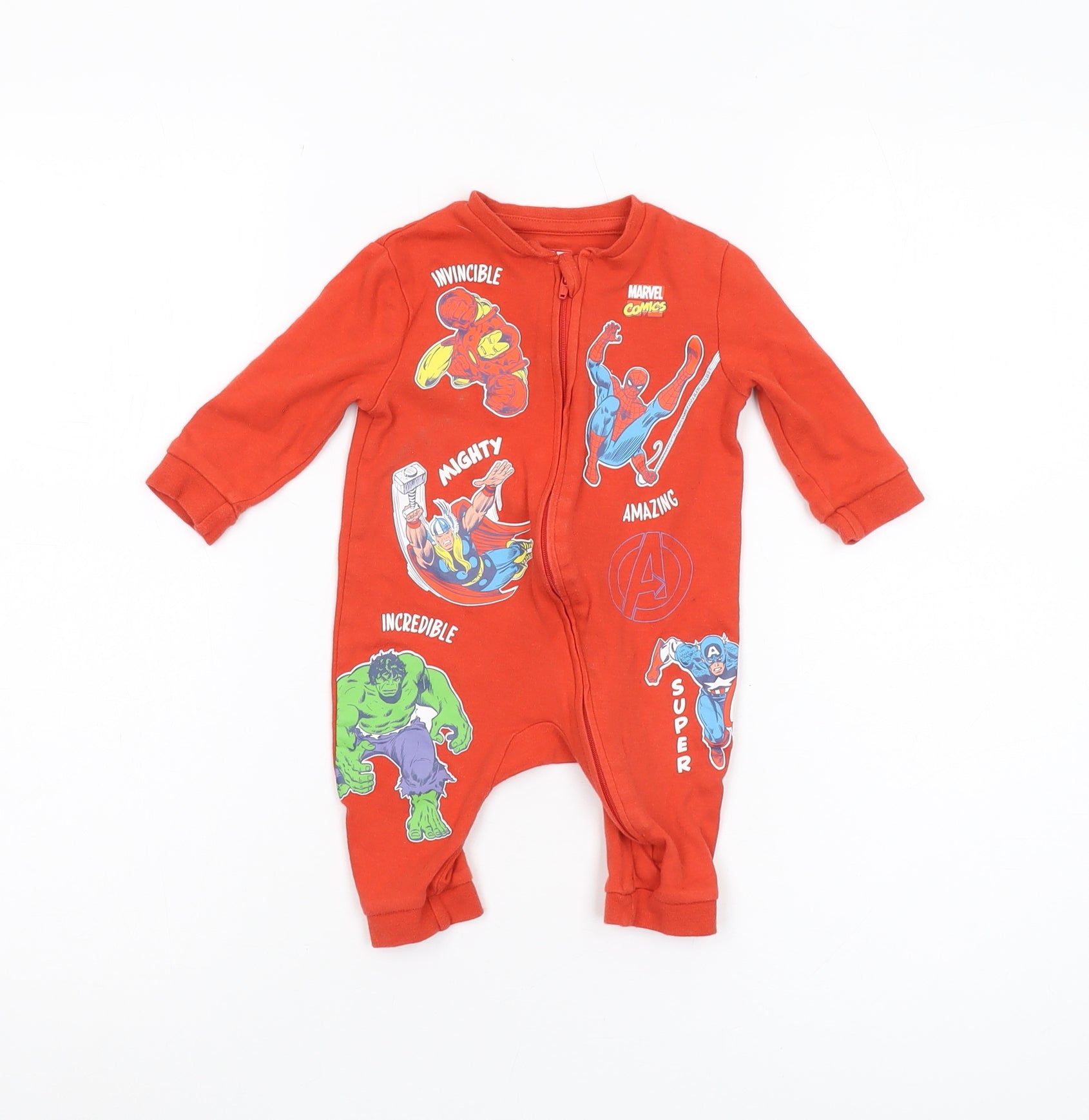 Red Unisex Babygrow 3-6M Superhero Long Sleeve