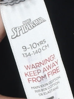 Step into the world of superheroes with this exciting Marvel Spider-Man long sleeve top, perfect for a young comic book enthusiast. Crafted from a comfortable blend of 95% cotton and 5% elastane, this top ensures a soft and stretchy fit, ideal for active adventures. The black fabric is adorned with striking Spider-Man graphics, making this top a must-have for fans of the Marvel Universe. Designed for boys aged 9-10 years, it features a classic crew neckline and a regular fit, ensuring both comfort and style. The shirt is machine washable for easy care, making it a practical choice for everyday wear. Whether for casual outings or themed events, this Spider-Man top makes an excellent addition to any young superhero's wardrobe.