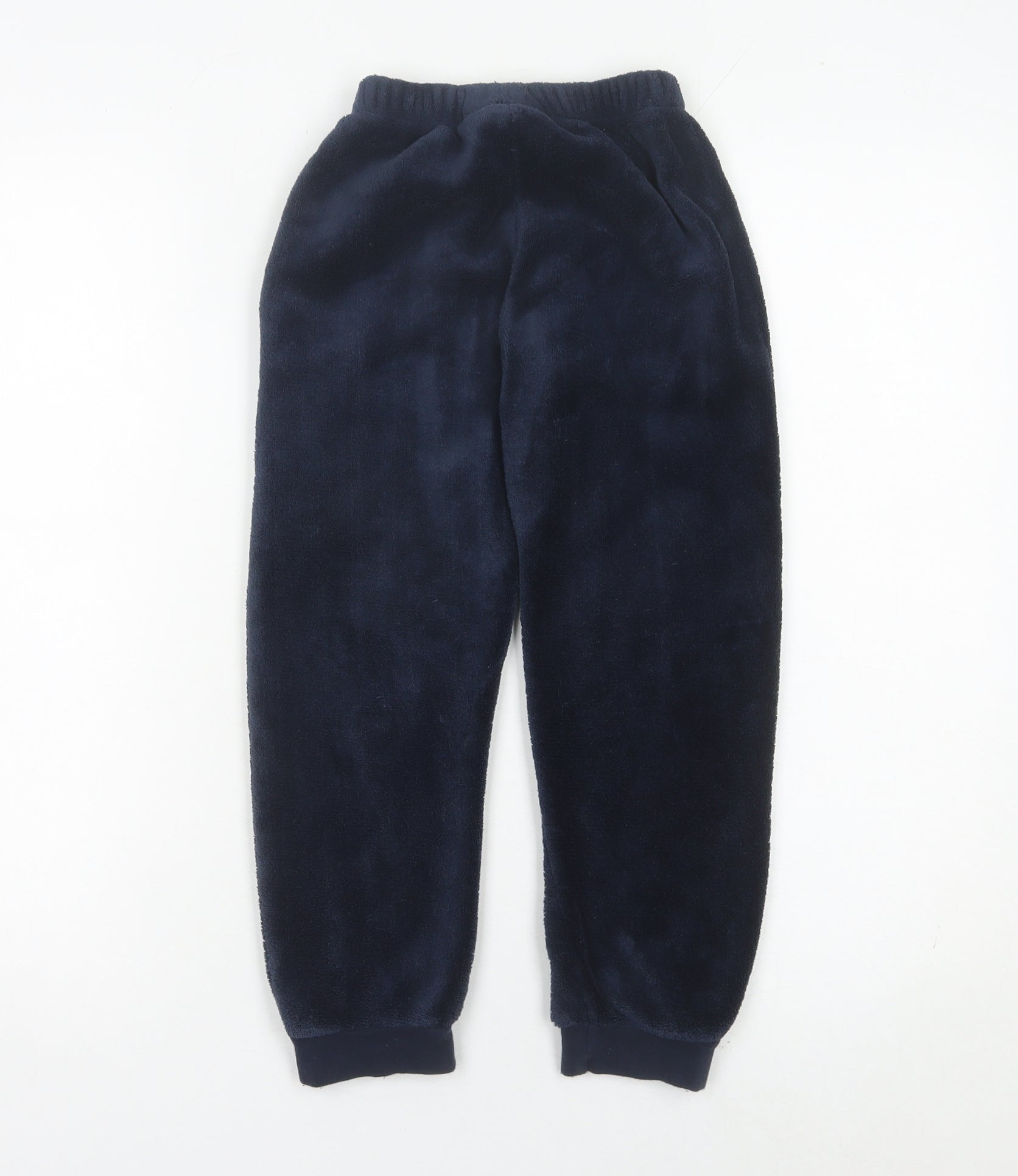 Add a fun and cosy touch to bedtime with these officially licensed Marvel Spider-Man boys' pyjama pants. Perfect for little superhero fans, these soft fleece pyjama bottoms come in a rich navy blue shade with the bold Spider-Man logo printed along one leg in striking red for a standout look. Designed for ages 4-5 years, these pants are lightweight yet warm, making them ideal for the cooler autumn and winter months. Crafted from 100% polyester fleece, the fabric is soft to the touch, breathable, and easy to care for with machine washable convenience. The elasticated waistband with an adjustable drawstring ensures a secure yet comfortable fit, allowing for ease of movement whether relaxing at home, lounging before bedtime, or sleeping. The fitted cuffed legs keep the trousers in place throughout the night, ensuring maximum comfort and warmth.Perfect for fans of the Spider-Man character and the Marvel universe, these pyjama pants make a fun gift or a practical addition to your child’s sleepwear collection. The versatile design makes them ideal nightwear while also being suitable as cosy lounge pants for relaxed daytime wear. This pair is in excellent condition, showing minimal signs of wear with no stains or damage present. While it does not include original sales tags, it retains its charm and durability, offering great value for money compared to buying new. Whether you're treating your child to fun nightwear or searching for the perfect Marvel gift, these boys’ Spider-Man fleece pyjama pants are a fantastic choice. Affordable, comfortable, and characterful, they are sure to become a favourite for bedtime or lounging around at home.