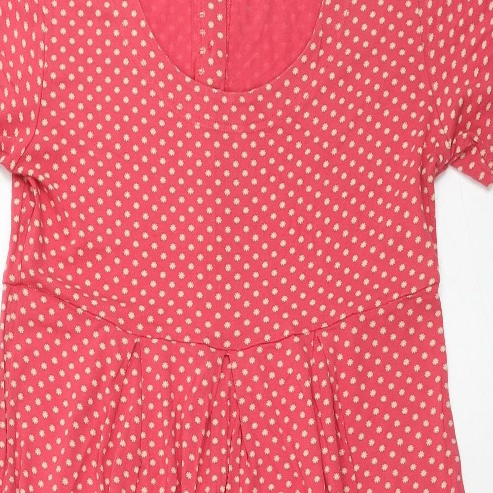 Womens Pink Polka Dot Viscose A-Line Size M Scoop Neck Button