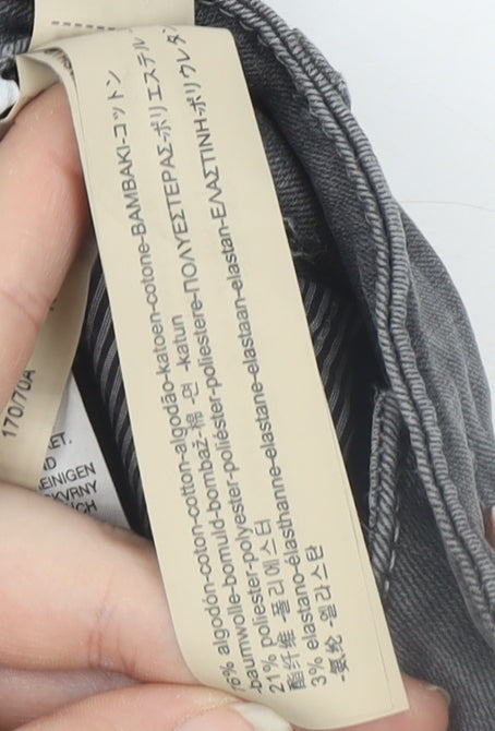 Step into effortless style with these Massimo Dutti men’s grey skinny fit jeans. Crafted from a premium denim blend of cotton, polyester, and elastane, these jeans offer a perfect balance of comfort, stretch, and shape retention. The sleek grey wash provides a modern, versatile look that can easily transition from day to night, whether paired with trainers and a tee or smart shoes and a shirt. Designed with a mid-rise waist and a figure-flattering skinny fit, they provide a contemporary silhouette that remains comfortable throughout wear. The traditional 5-pocket design offers practicality while maintaining a clean, minimalist finish enhanced by discreet tonal stitching and premium detailing typical of Massimo Dutti craftsmanship. Subtle fading across the thighs adds depth and an effortlessly worn-in effect. These jeans feature both a button and zip fastening for a secure fit, making them suitable for regular daily wear across autumn, winter, and spring. Machine washable for easy care, they are a stylish and durable option that captures understated luxury. In excellent pre-owned condition with minimal signs of wear, these jeans are perfect for those seeking refined, high-quality denim at an accessible price. With classic European tailoring and a comfortable modern fabric blend, they promise both sophistication and practicality. Ideal for smart-casual outings or relaxed evenings, Massimo Dutti’s skinny fit jeans bring essential versatility to any wardrobe.