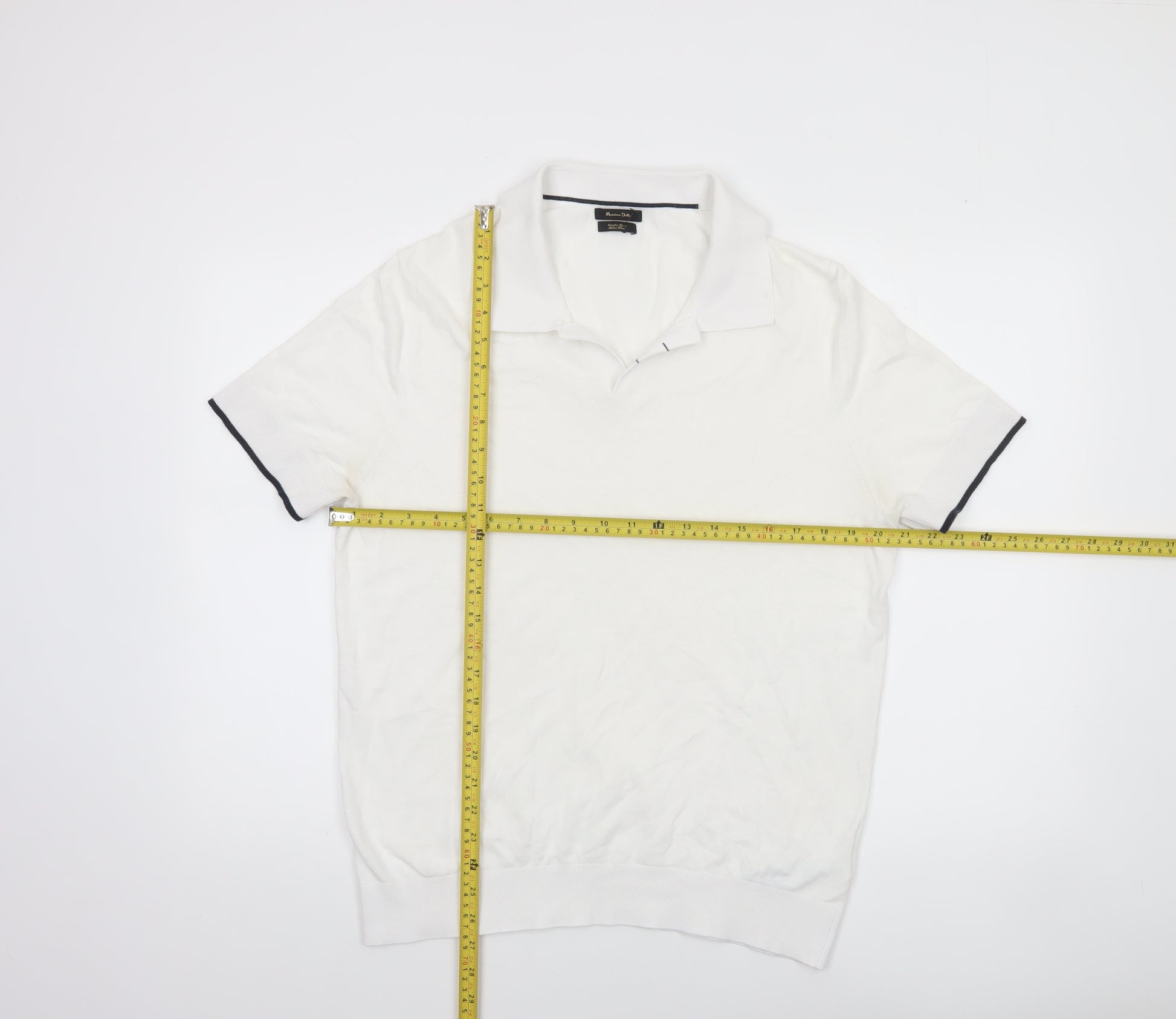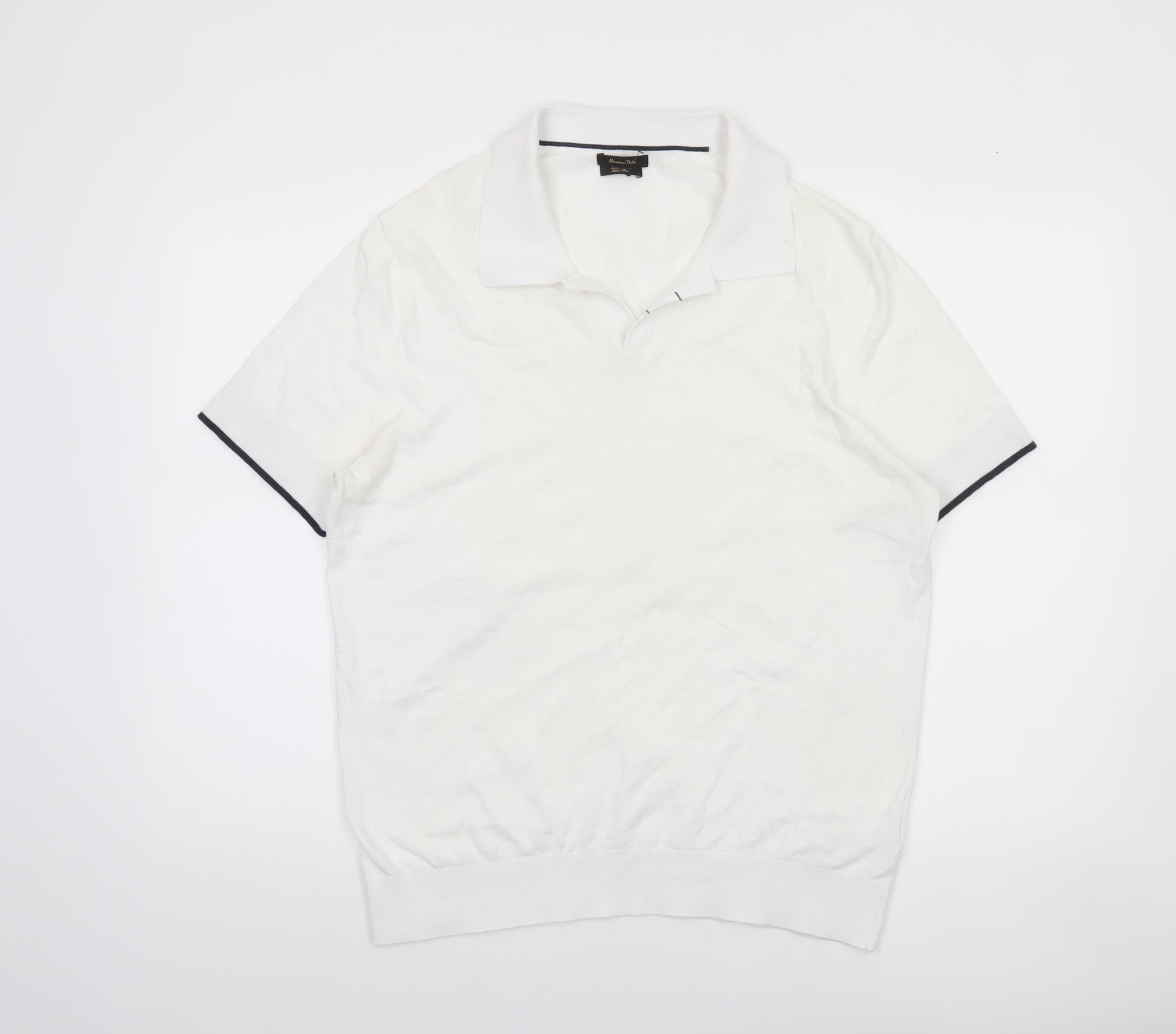 This stylish Massimo Dutti men's polo shirt is a refined essential for smart-casual dressing. Crafted from a premium mix of 70% cotton and 30% lyocell, it offers a soft, lightweight feel with excellent breathability, ensuring comfort throughout the day. The crisp white colour gives it a fresh, clean aesthetic while the contrasting trim details on the collar and sleeve cuffs add a touch of sophistication and modern appeal. Designed with a point collar and short sleeves, the shirt provides a classic polo silhouette that works effortlessly across casual and semi-formal occasions. The regular fit ensures a comfortable yet flattering shape, ideal for versatile wear. This piece is well-suited for spring and summer, offering a breathable and easy-care option that complements jeans, chinos or tailored shorts. With its understated design and fine fabric quality, it reflects the timeless elegance associated with Massimo Dutti. The polo has been gently worn and remains in very good condition, showing only minor creasing typical of storage and minimal use. It retains its shape and structure, reflecting careful wear and maintenance. Machine washable for convenient care, it seamlessly balances comfort, durability, and refined style. Whether styled for a weekend outing, a smart lunch, or a relaxed evening event, this polo provides effortless sophistication. Elevate your casual rotation with this high-quality Massimo Dutti piece—a wardrobe staple that combines comfort, versatility, and luxury craftsmanship. A perfect choice for men who appreciate European tailoring, premium materials, and a polished yet relaxed look. Available in size L and ready to become a go-to favourite for any occasion.