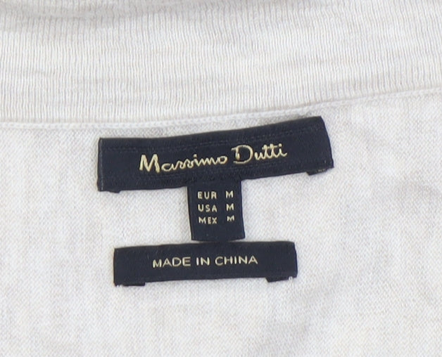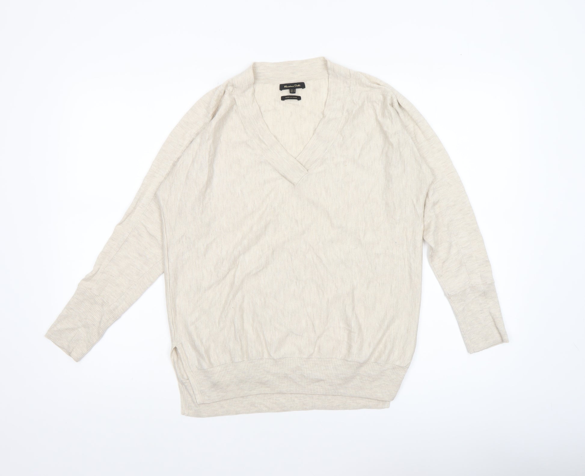 This elegant Massimo Dutti women’s beige V-neck jumper is a perfect combination of classic style and lightweight comfort. Crafted from a luxurious blend of 55% linen and 45% cotton, it offers breathability and softness, making it ideal for layering throughout the year. Designed in a neutral beige tone, this jumper provides effortless versatility — suitable for both casual days and smart-casual occasions. The fine knit gives it a refined finish, complemented by long sleeves and a subtle ribbed hem and cuffs that ensure a comfortable fit.Cut in a regular fit that flatters without clinging, this jumper drapes beautifully whether worn alone or over a collared shirt. The V-neckline adds a feminine touch and pairs perfectly with delicate jewellery or scarves. With its lightweight composition, it’s ideal for spring and autumn yet breathable enough for cooler summer evenings.Massimo Dutti is known for sophisticated essentials, and this jumper embodies that effortless European chic. The beige hue works well with tailored trousers, jeans, or skirts, offering endless styling possibilities. The natural linen-cotton mix helps regulate body temperature, ensuring comfort throughout the day.This pre-loved piece is in excellent condition with minimal signs of wear and no visible flaws. Its timeless design and high-quality craftsmanship make it a valuable addition to any wardrobe. Machine washable for easy care, this jumper will seamlessly blend into your everyday dressing routine while maintaining its premium feel. A must-have wardrobe staple for the discerning woman who values understated elegance and versatile comfort.