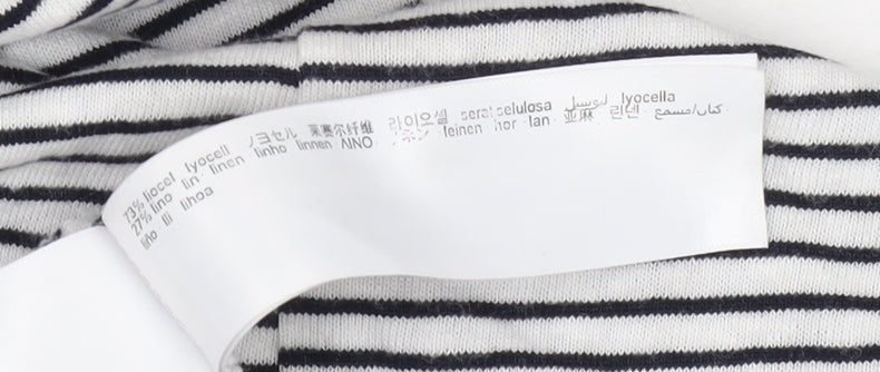 Upgrade your summer wardrobe with this elegant black striped tank dress from Massimo Dutti. Crafted with a luxurious blend of 75% lyocell and 25% linen, this dress is designed for ultimate comfort and breathability. The soft knit fabric hugs your curves in all the right places, making it an effortless choice for casual outings and laid-back gatherings.The sleeveless design, combined with a flattering scoop neckline, makes it ideal for soaking up the sun while keeping cool. This tank dress features a timeless striped pattern, ensuring that it remains a staple in your wardrobe for seasons to come. The dress is designed for women who appreciate both style and comfort. Perfect for summer get-togethers, leisurely strolls in the park, or simply as an everyday casual piece.Lightweight and easy to pull on, the dress is as functional as it is stylish. Its machine washable nature ensures that it's easy to care for, making it an excellent choice for busy lifestyles. With its clean lines and modern fit, this dress is a must-have for anyone looking to make a statement with minimal effort. Pair it with your favourite sandals or trainers and a chic sunhat for a complete look.Get ready to embrace the art of understated elegance with this versatile Massimo Dutti tank dress. Whether you're heading out for a daytime adventure or relaxing at the beach, this dress is your go-to piece for effortless style all summer long.