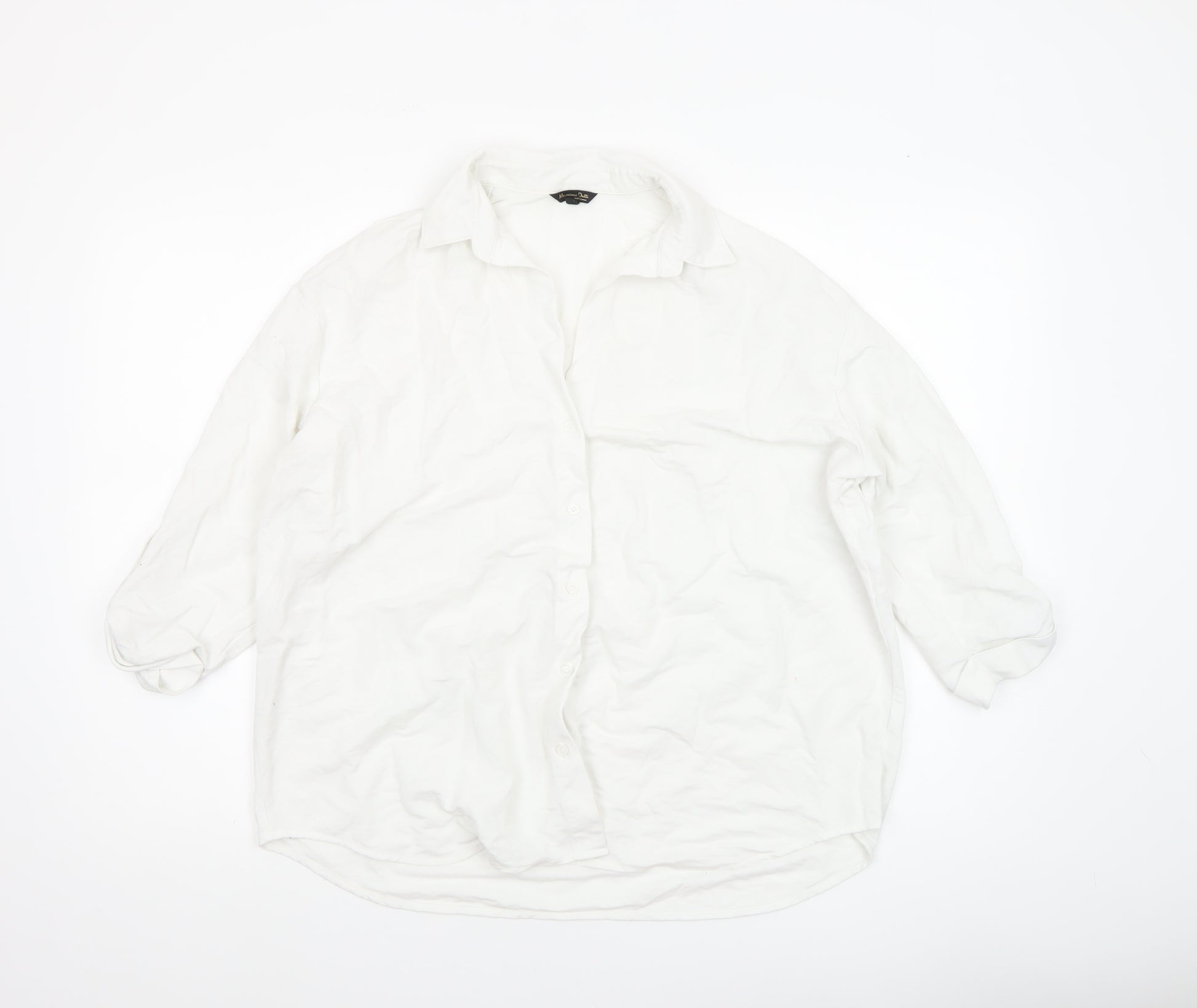 Elevate your everyday wardrobe with this elegant Massimo Dutti women's white button-up shirt. Crafted from 100% cotton, it offers a soft, lightweight, and breathable feel, ensuring comfort throughout the day. Designed with a classic collared neckline and relaxed fit, this piece effortlessly combines sophistication with ease, ideal for both casual and professional settings. The crisp white colour enhances its versatility, allowing you to pair it with tailored trousers for business wear, jeans for a smart-casual vibe, or a skirt for an understated chic look. Its full-length sleeves with button cuffs add a refined finish, while the pure cotton woven fabric provides a natural texture with excellent breathability for spring through to autumn wear. The front button closure enhances its timeless style, making it a wardrobe staple suitable for layering or wearing on its own. Perfect for travelling, workdays, or laid-back weekends, this shirt embodies Massimo Dutti’s signature minimalist sophistication. Though pre-owned, it remains in excellent condition, showing only light creasing consistent with gentle wear and storage. Clean and well-maintained, it represents an exceptional balance of comfort, durability, and refined design for the contemporary woman. Whether styled tucked into tailored trousers or worn loose over slim-fit jeans, this Massimo Dutti shirt brings effortless European polish to any outfit and season. A must-have piece for those who appreciate high-quality everyday essentials.