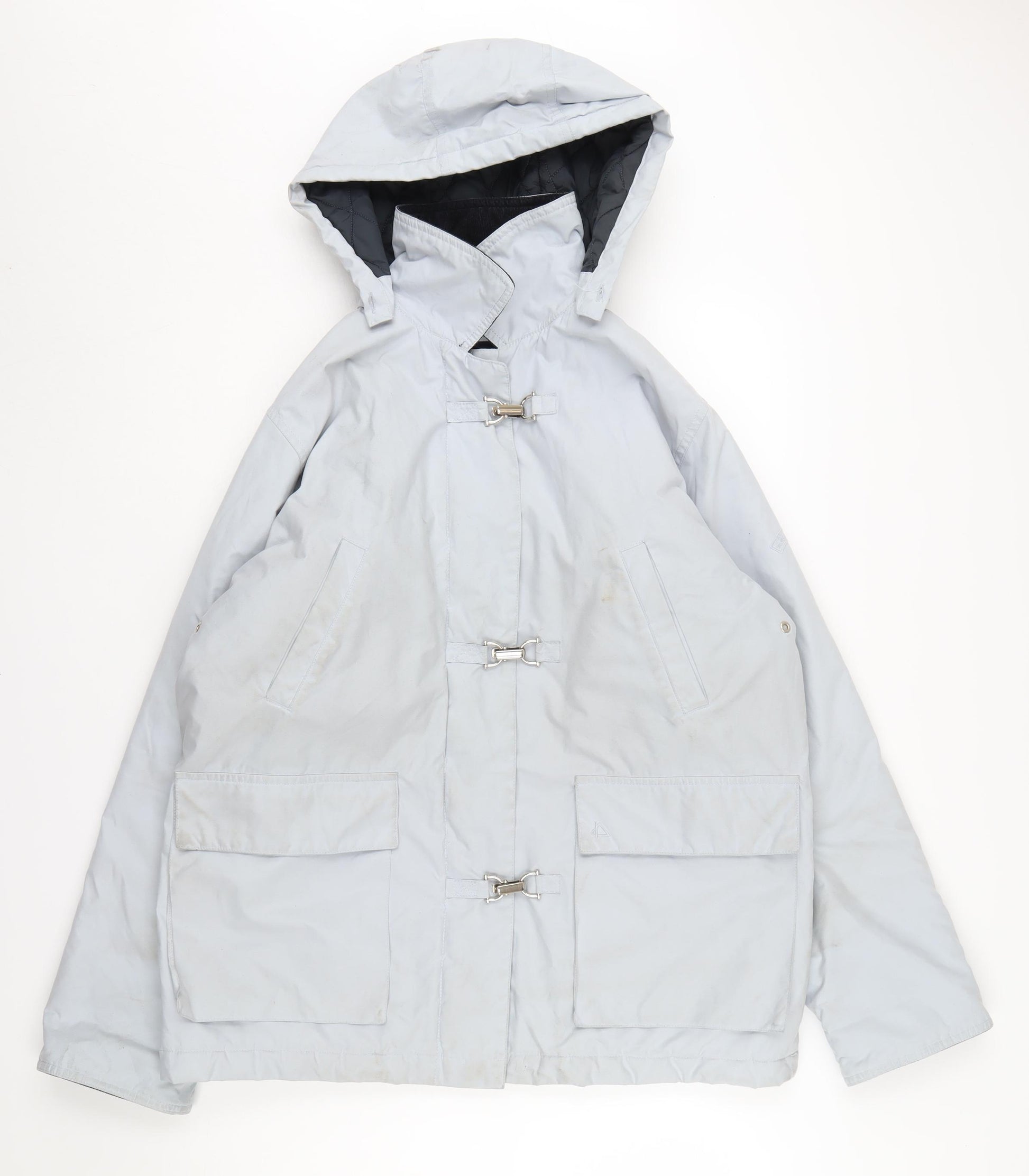 This stylish Mât de Misaine anorak jacket is perfect for women seeking both functionality and fashion. Designed for casual occasions, this grey jacket comes with a toggle closure and is ideal for the autumn and winter seasons. Crafted from a durable mix of polyester, polyurethane, and polyamide, the jacket is hooded and features convenient pocket details. With a regular fit and long sleeves, it's both comfortable and practical. Despite being pre-owned, the jacket is in very good condition with slight marks. An excellent choice for outdoor activities, this jacket will keep you warm and stylish.