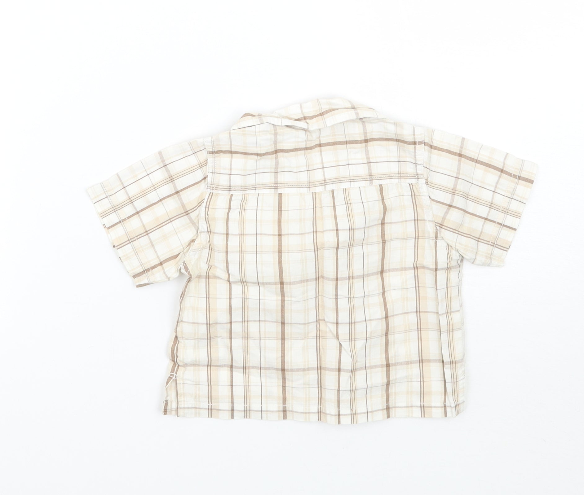 Boys Beige Check Basic Button-Up Size 0-3 Months