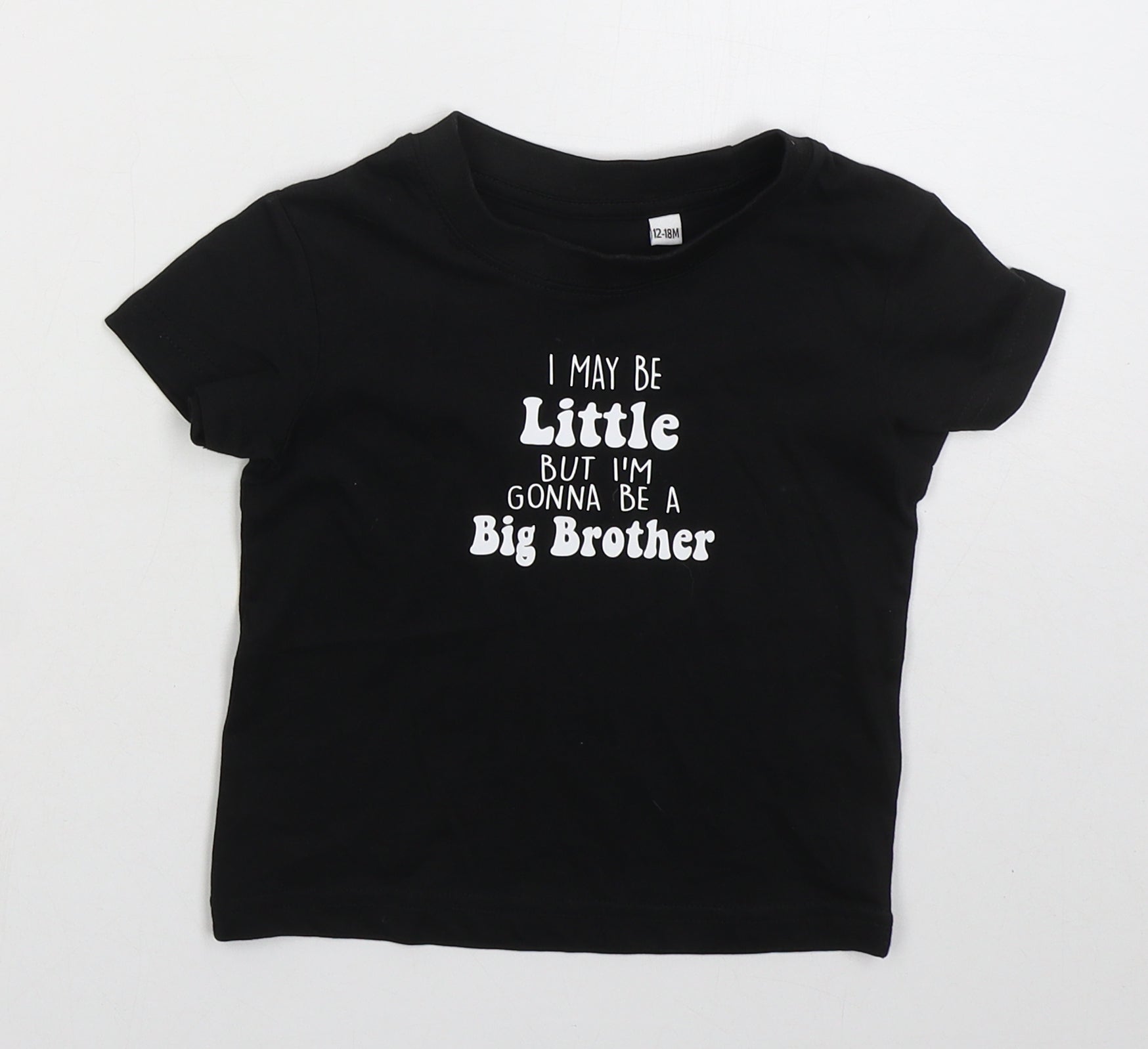 Boys Black Cotton Basic T-Shirt Size 12-18 Months Crew Neck Pullover - I May Be Little But I'm Gonna Be a Big Brother